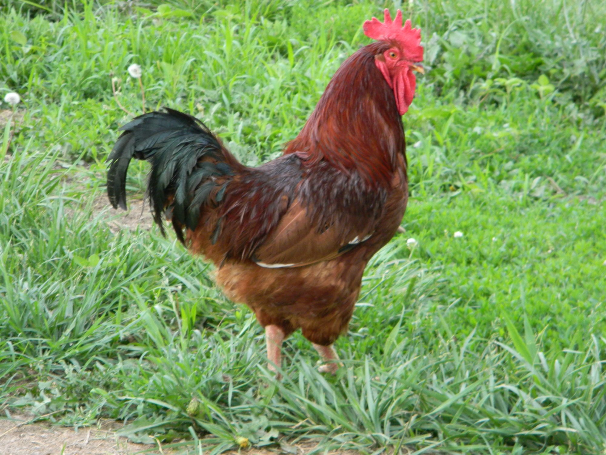 Reggie my Rhode Island Red rooster! He loves to show off to his hens, the chicks, and even my ducks! He is very protective of his hens too!