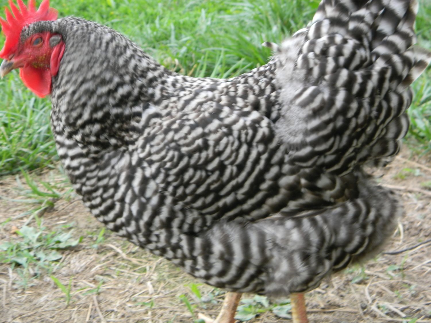 Barra the Barred Rock. She is one on my older hens but she still is laying! She is sweet and but not completely tame.