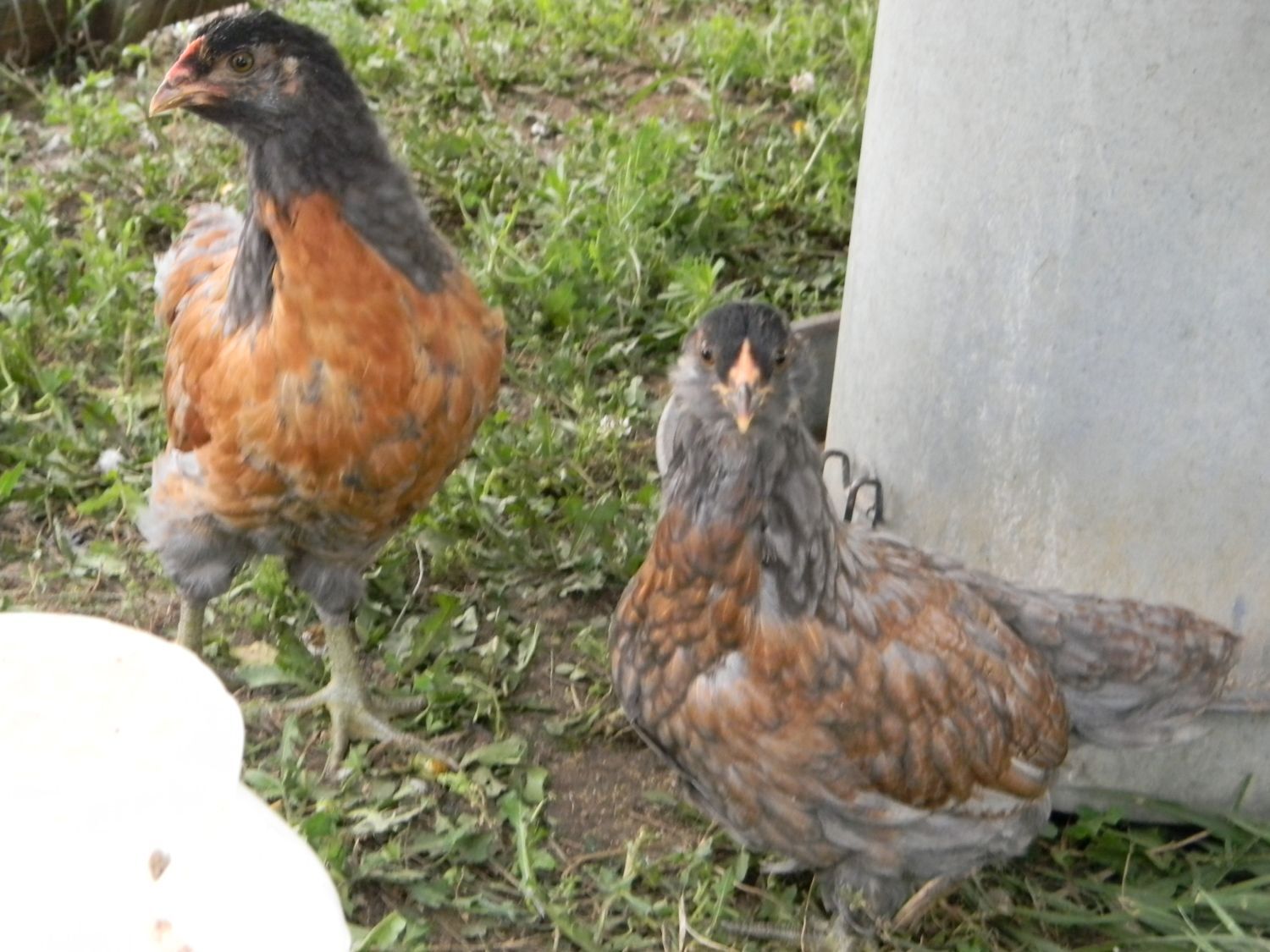 Two of my EE pullets! Back is Ella and front is Easta. They both are a little timid/shy but I'm working on trying to tame all of them!