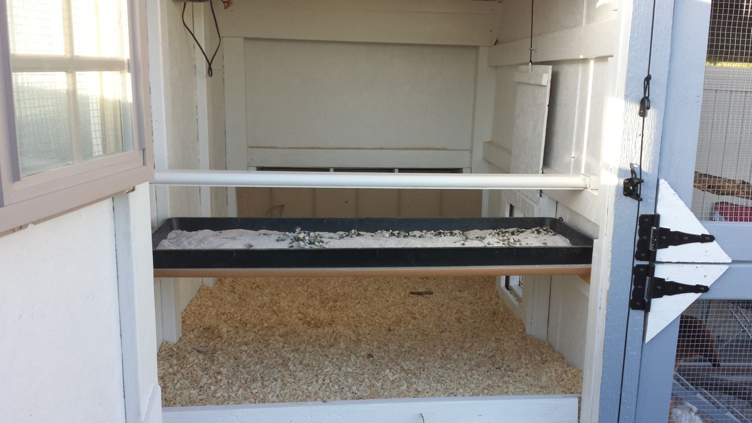 Tray after a 3-4 minute cleanup. Good as new, awesome and easy to clean! Nest boxes in background are blocked off until chickens get closer to laying.