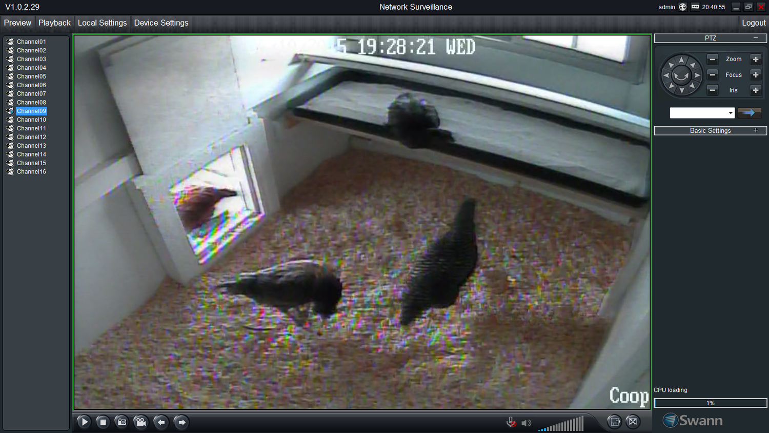 And here is a screen shot of them sleeping right now: all on the roost in the upper right corner -
