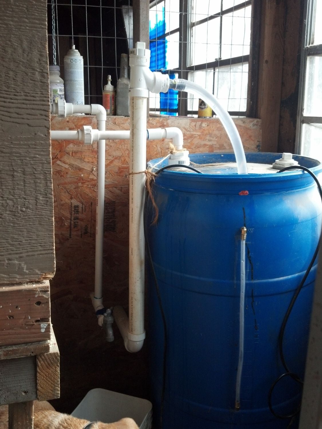 My DH designed this system from similar systems on this site. Thank you BC of all the idea's. I live in South Dakota and was tired of filling buckets and breaking ice. Our system is inside but the building is not insulated, yet. It has been -40 and still kept working this winter. So I wanted to recommend this to anyone else looking for a winter option.