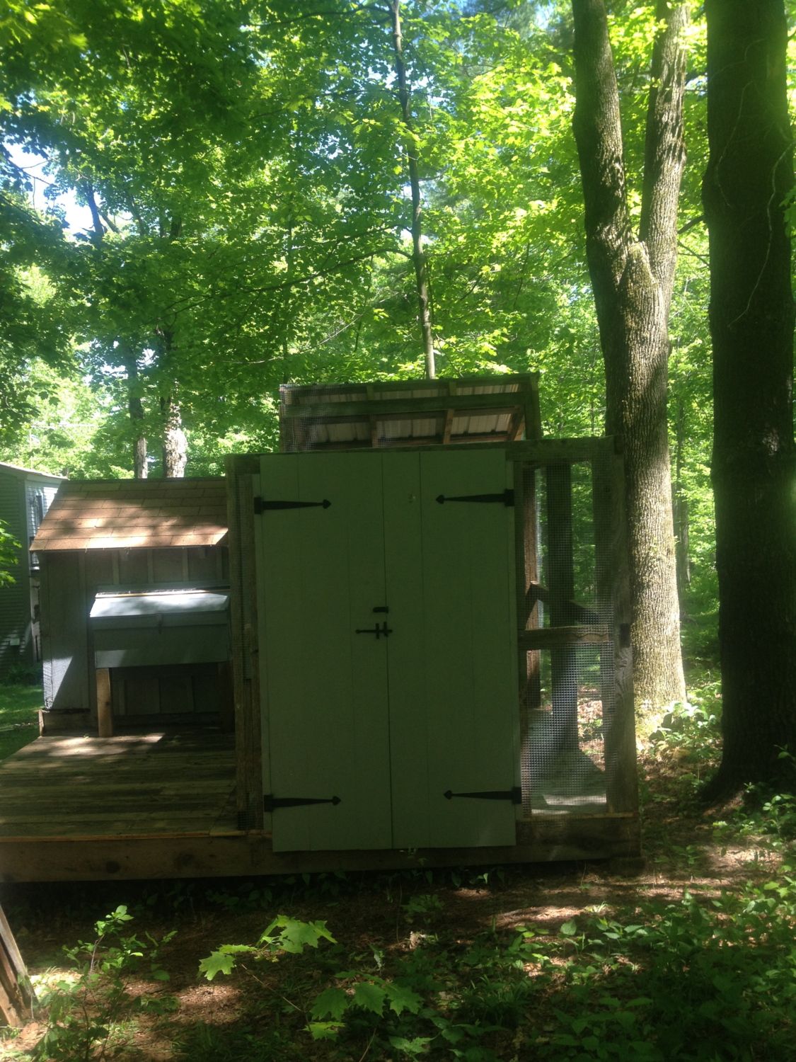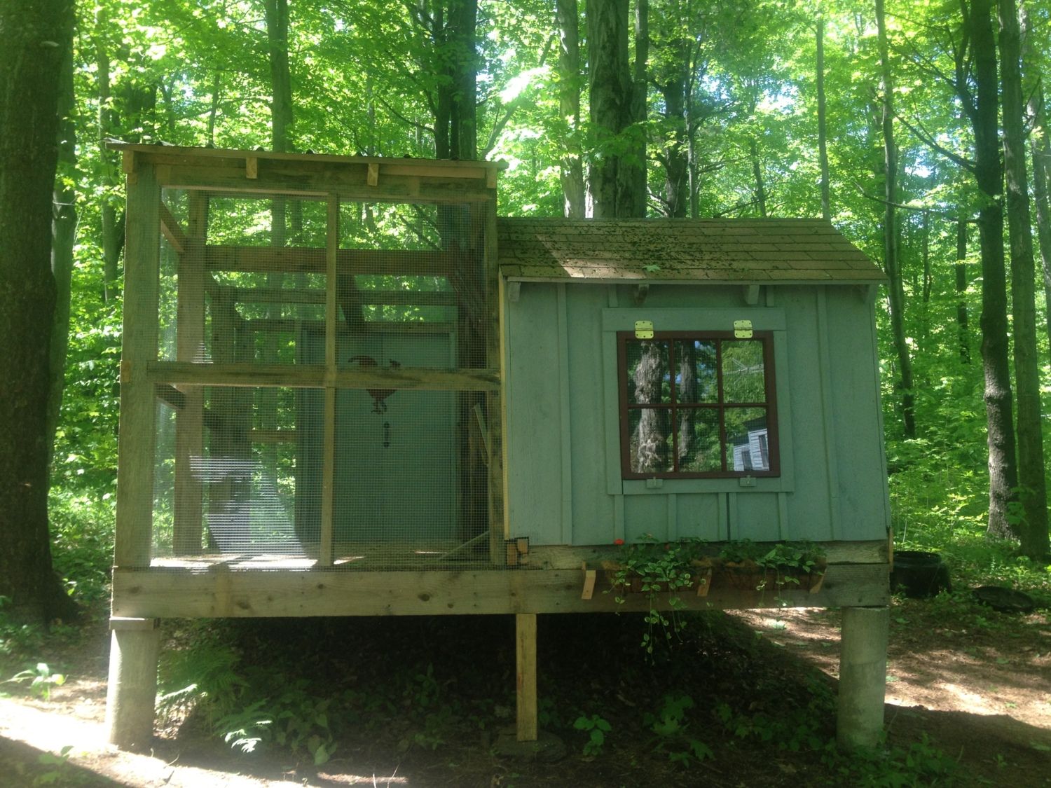 My "baby" is a 6'2" college soon-to-be junior. When a winter storm downed his tree-house we decided to get chickens. 100 feet of 1/2" hardware cloth, repurposed shed doors, some recycled windows ($10 each), $10 vinyl flooring and we are ready for the girls to arrive on Friday. We built a platform (also out of repurposed lumber) to keep them secure while we are at work all day. Planning on letting them free-range when we are home.