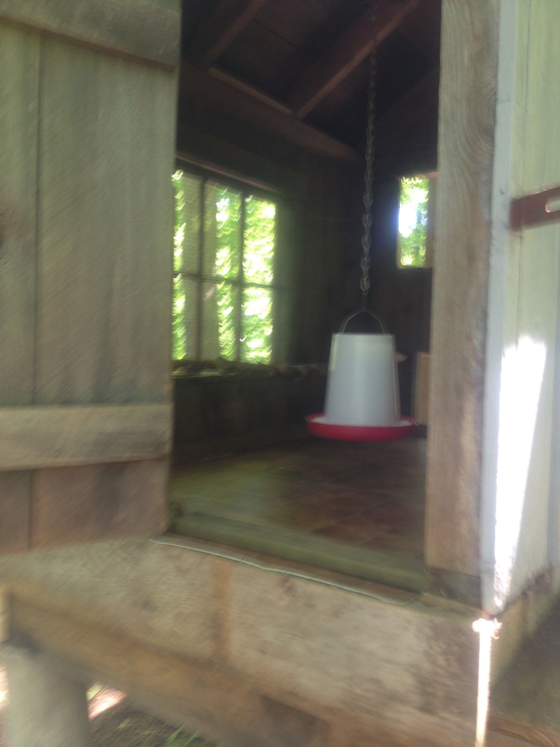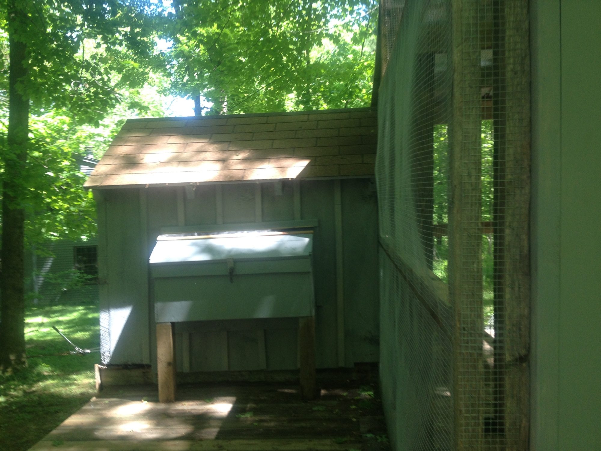 inside-vinyl floor and roost in front of "picture" window (windows are both screened with 1/2" hardware cloth)