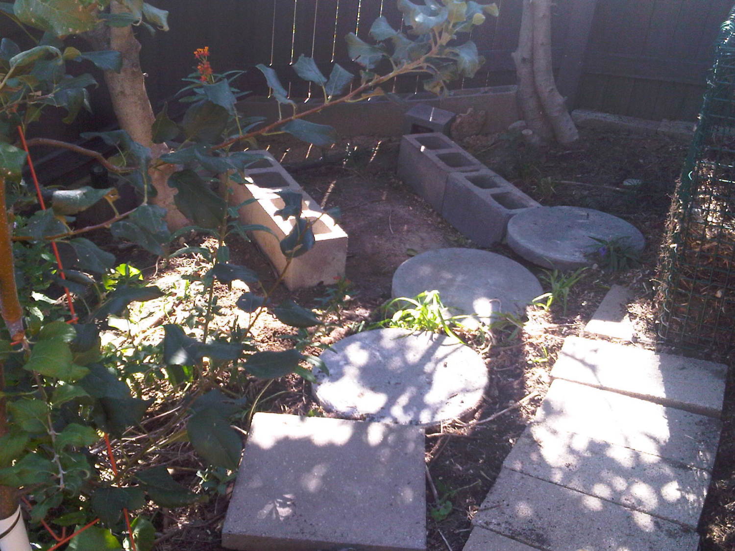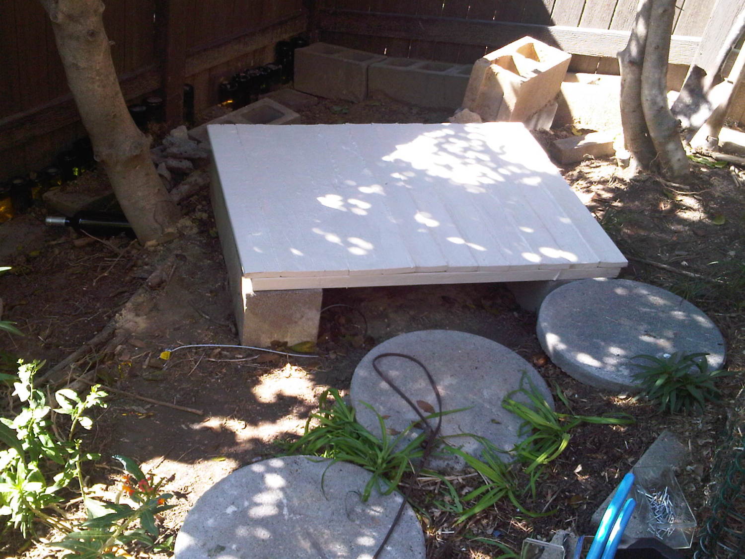 Cinder block foundation. I tried to make it level and square. I made it as big as the space would allow which is ~ 3 x 3 feet.