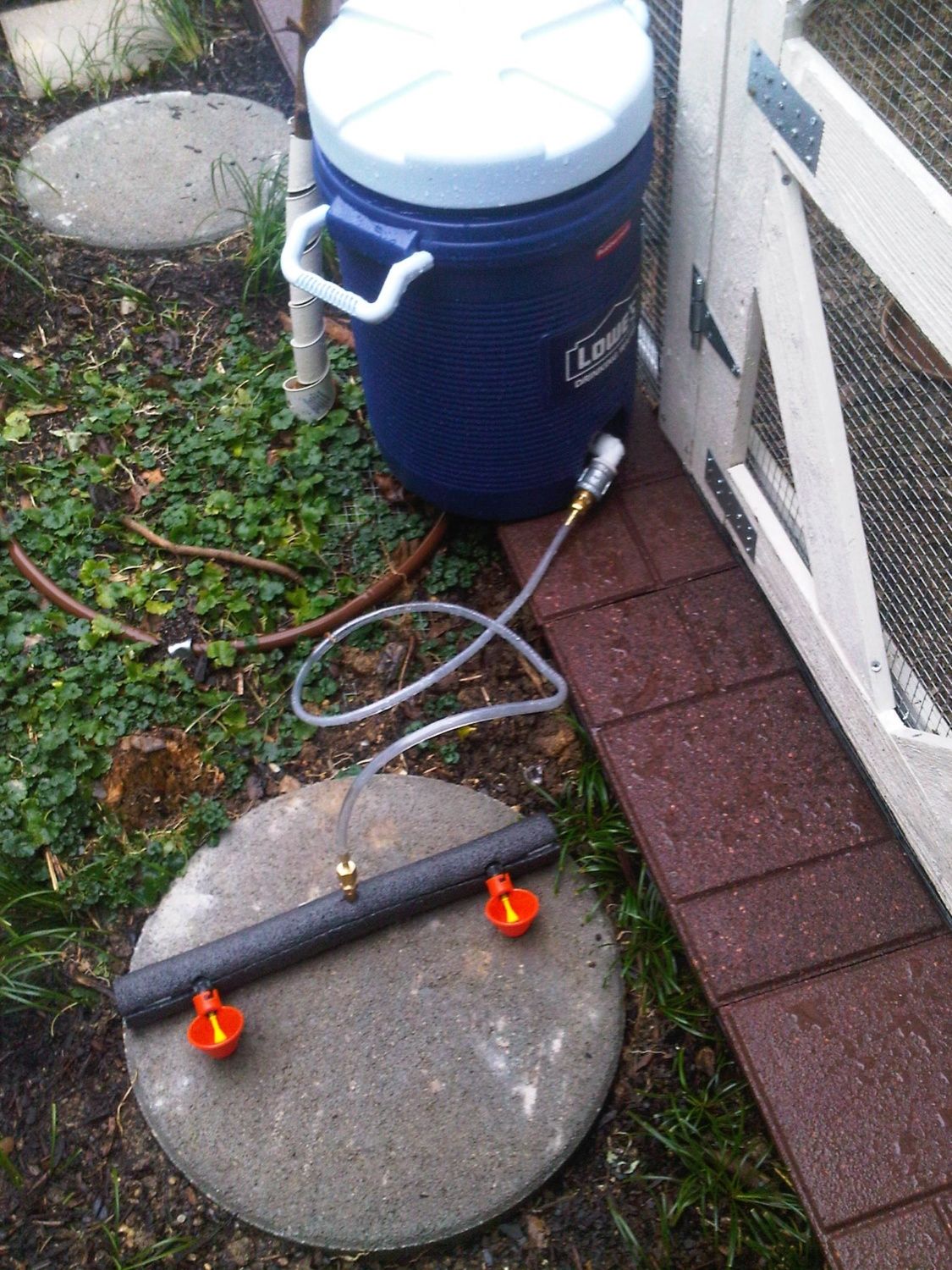 This is the beak-time waterer that I'm going to use. I have installed it since taking this picture. It should be level. I thought it was going to leak but in the end it works pretty good.