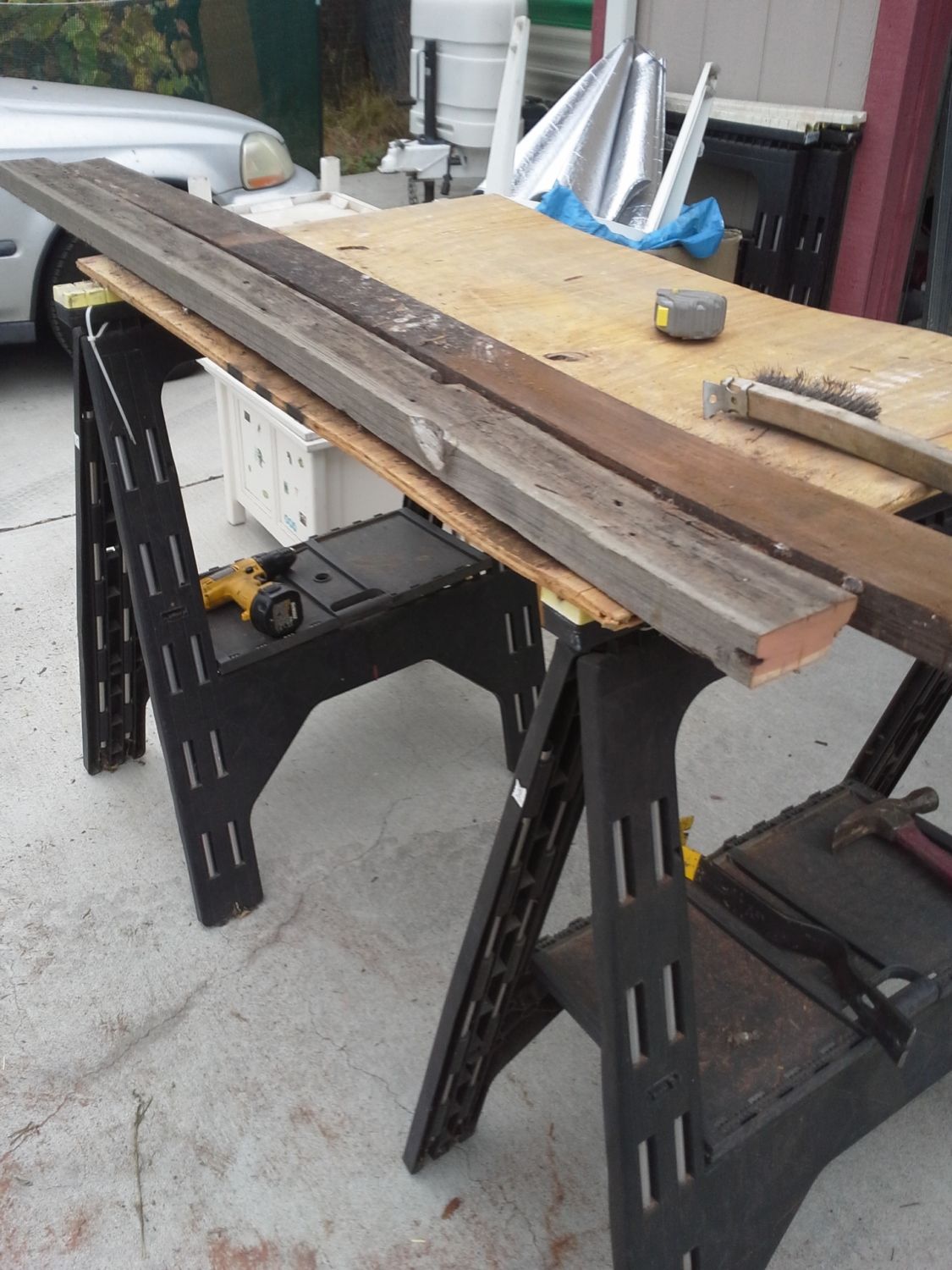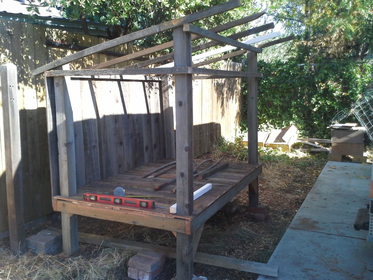 Way too much time was spent sorting, trimming and prepping the salvaged posts and 2x4s.