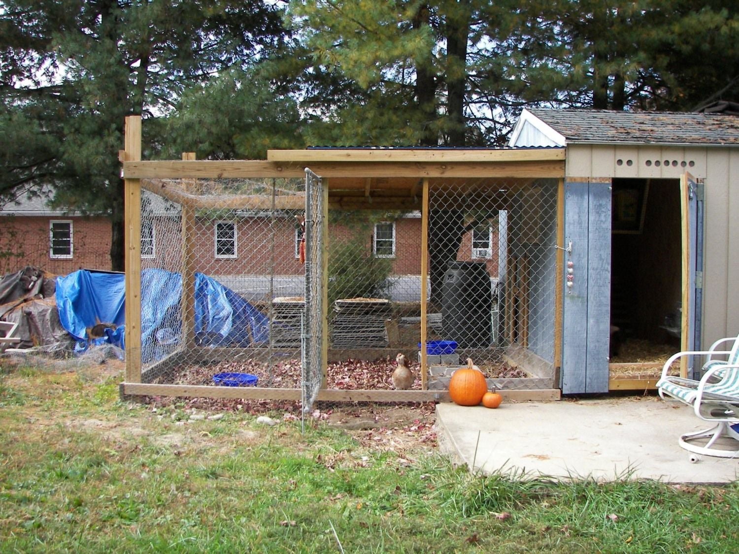 I can easily walk into the coop and the run which is really convenient. Also for security I have dug a trench all the way around the run and buried chicken wire about 18 inches out and up the fence. It also has a chicken wire roof