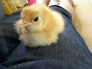 This is a picture I took of Wafers when she was very young. We found she and her sister, Coral Rose, in one of the laying boxes the day after a five foot black chicken snake got into the coop, killed Coral Rose's mother (the hen that was laying on