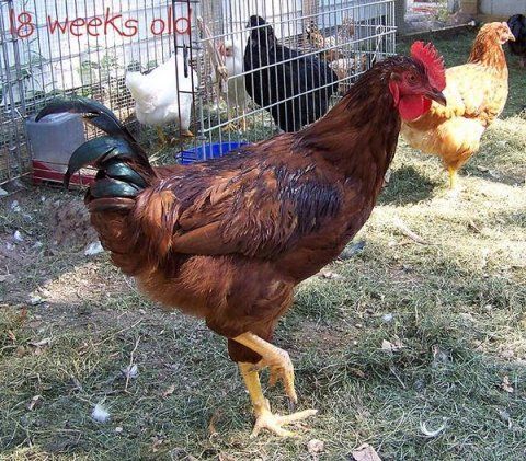 Rose turned into quite the beautiful gentleman! A true Rhode Island Red is a darker red color. You can see that Rose is a hatchery chicken by his color. But he is still beautiful!