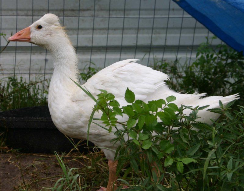 Breed Details: I've read alot about Roman Tufted Geese (RTG) and I have some of my own. Roman Tufted Geese are a very good weed & bug controling bird, they are very easy keeping geese. They are very talkative when excited and their blue eyes and tuft make them a fascinating waterfowl. Their actions will make you luagh, and from my experience they love being held if you have a good connection with them, they are easy to connect with. It resembles a small Embden goose except for the tuft of feathers on its head. Both males and females look alike, although males may be slightly larger. |