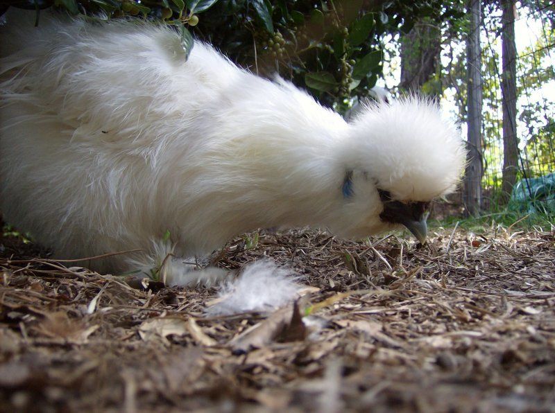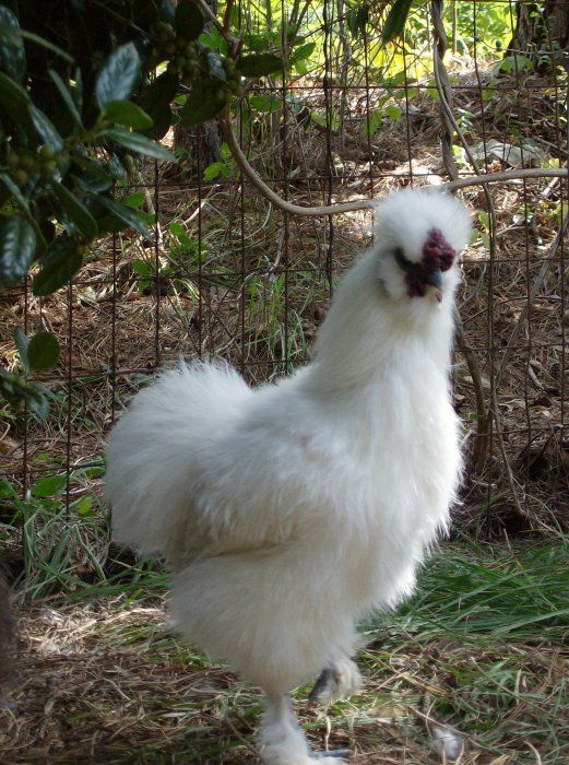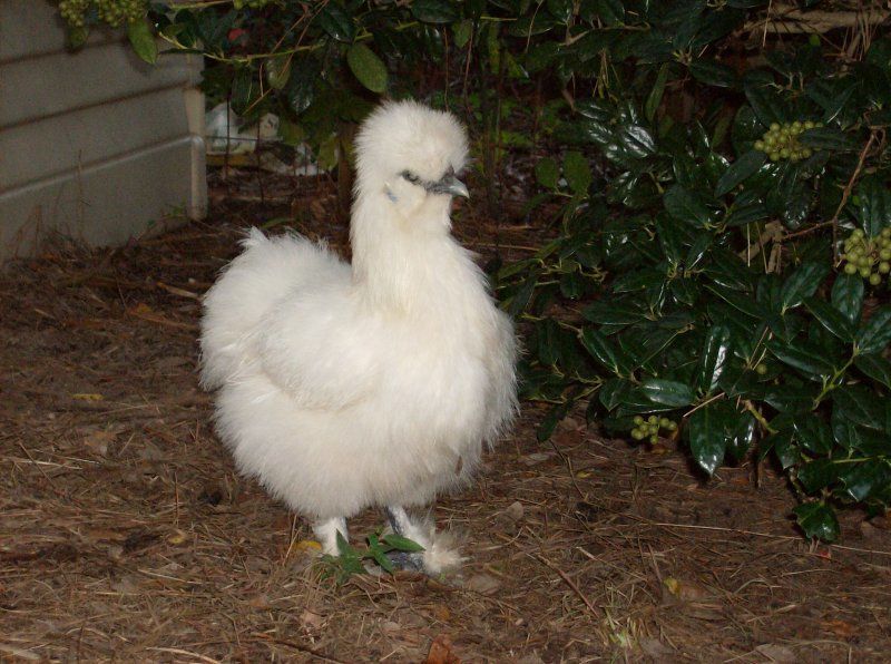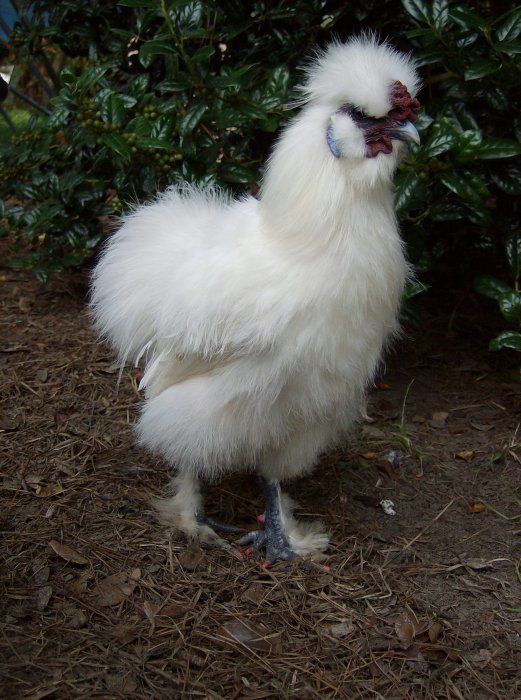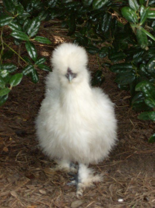 Silkie White Created by Breed Information, Comments, and Experience with breed: Silkies were my first chickens, and I couldn't have chosen better. They are docile, and all around have an great temprement. I have one who will watch t.v. with me. Silkies get along great with other chickens. Ever the roosters! Many people keep Silkies as children's pets. Silkies are verry distinctive. And some of the oddest chickens that you will find. They have bright blue ears. Fluffy feathers because the feathers do not have barbules to meke them rgid. They end up looking like hair balls.Silkies have HUGE eyes. Silkies have feathered feet with 5 toes. They have black skin and bones, people in Japan eat them as an medical remedy. Some people keep silkies because of there willingness to go broodie (sit on eggs) They do produce eggs, they are like mini eggs. There broodieness interupts there egg laying cycle. Silkies can't fly well. They don't do well in muddey conditions either.They need proctive housing. They are not the chicken for free ranging. |