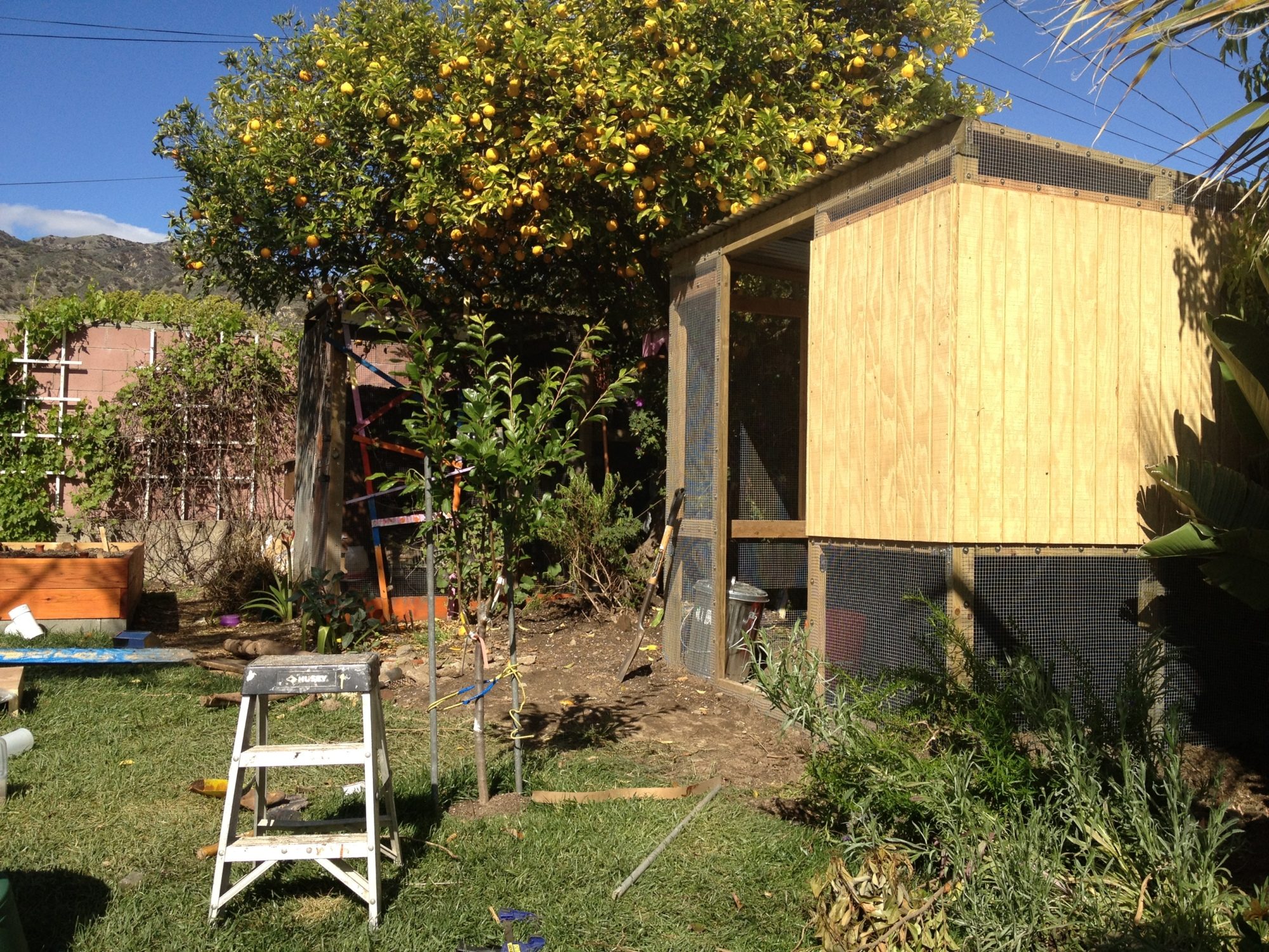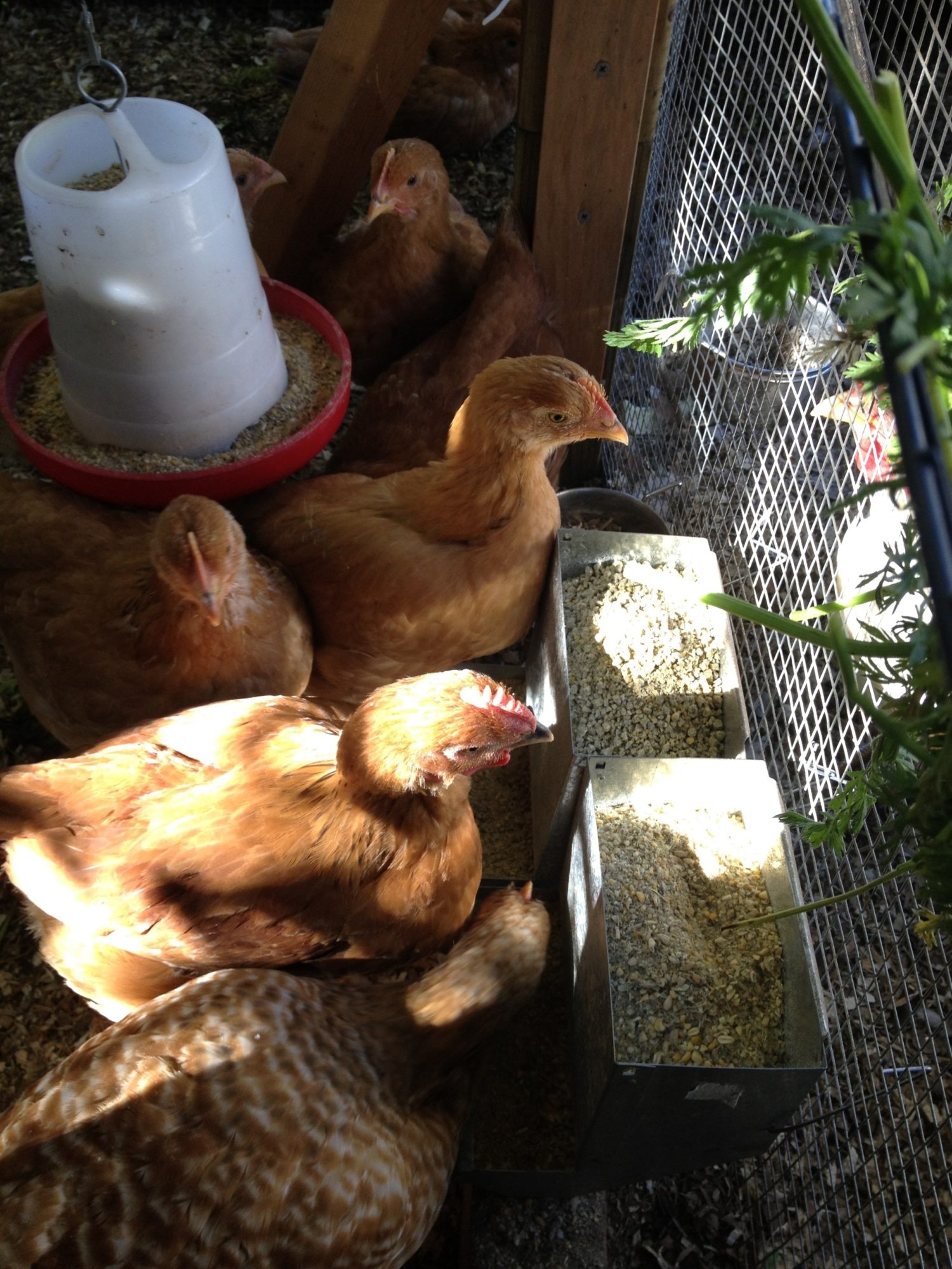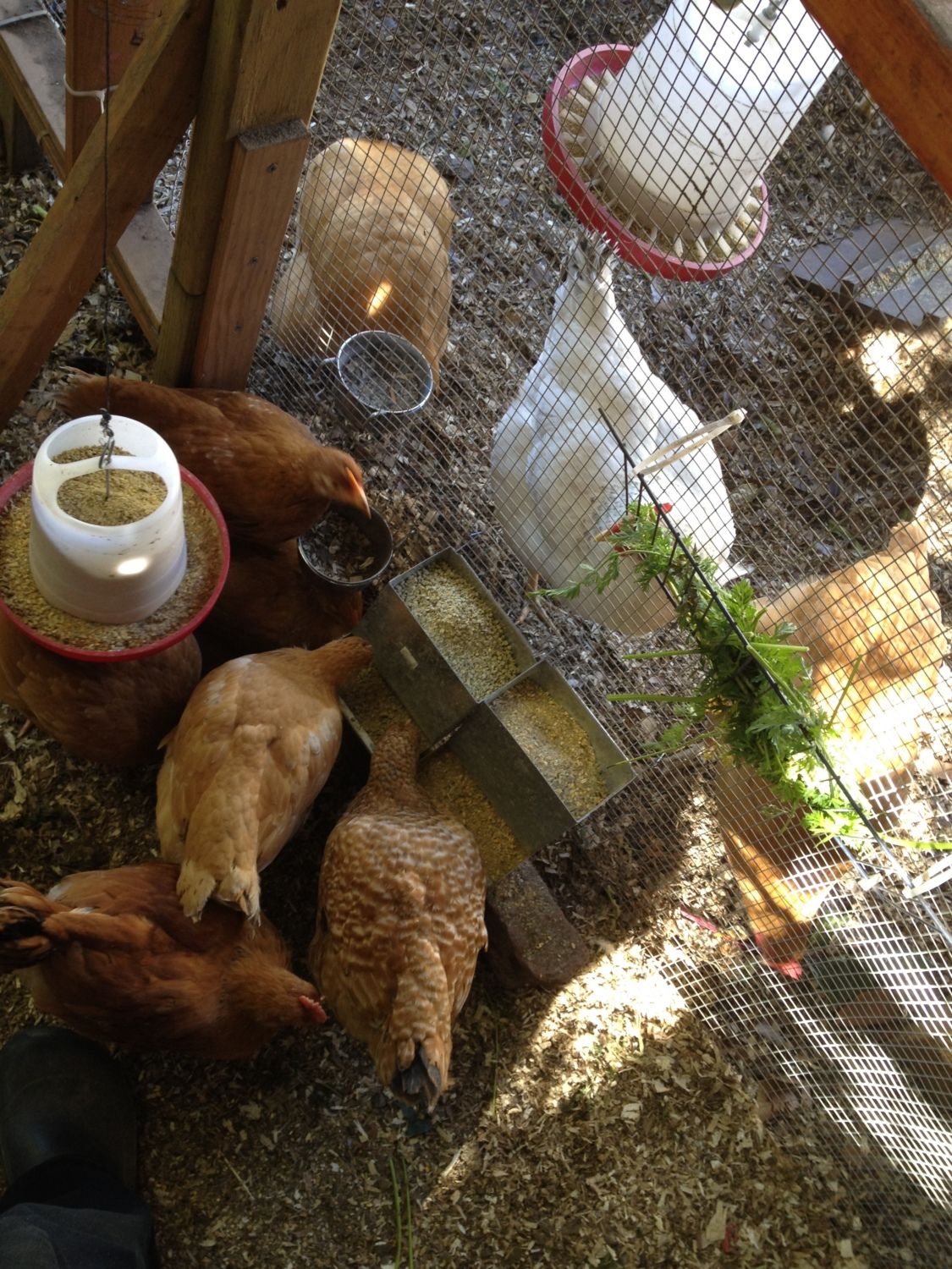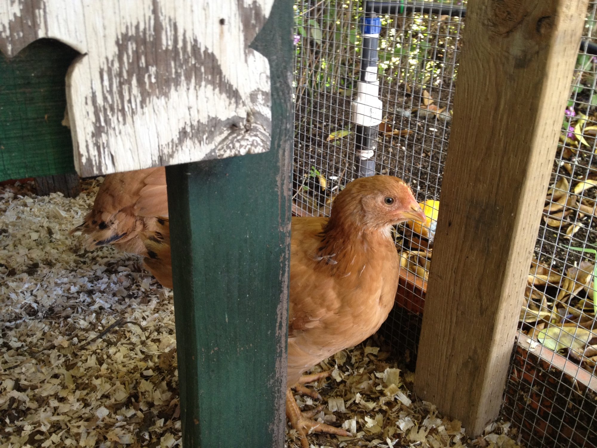 chicken in rain - they actually get wet when it really pours, but it doesn't seem to bother them too much.