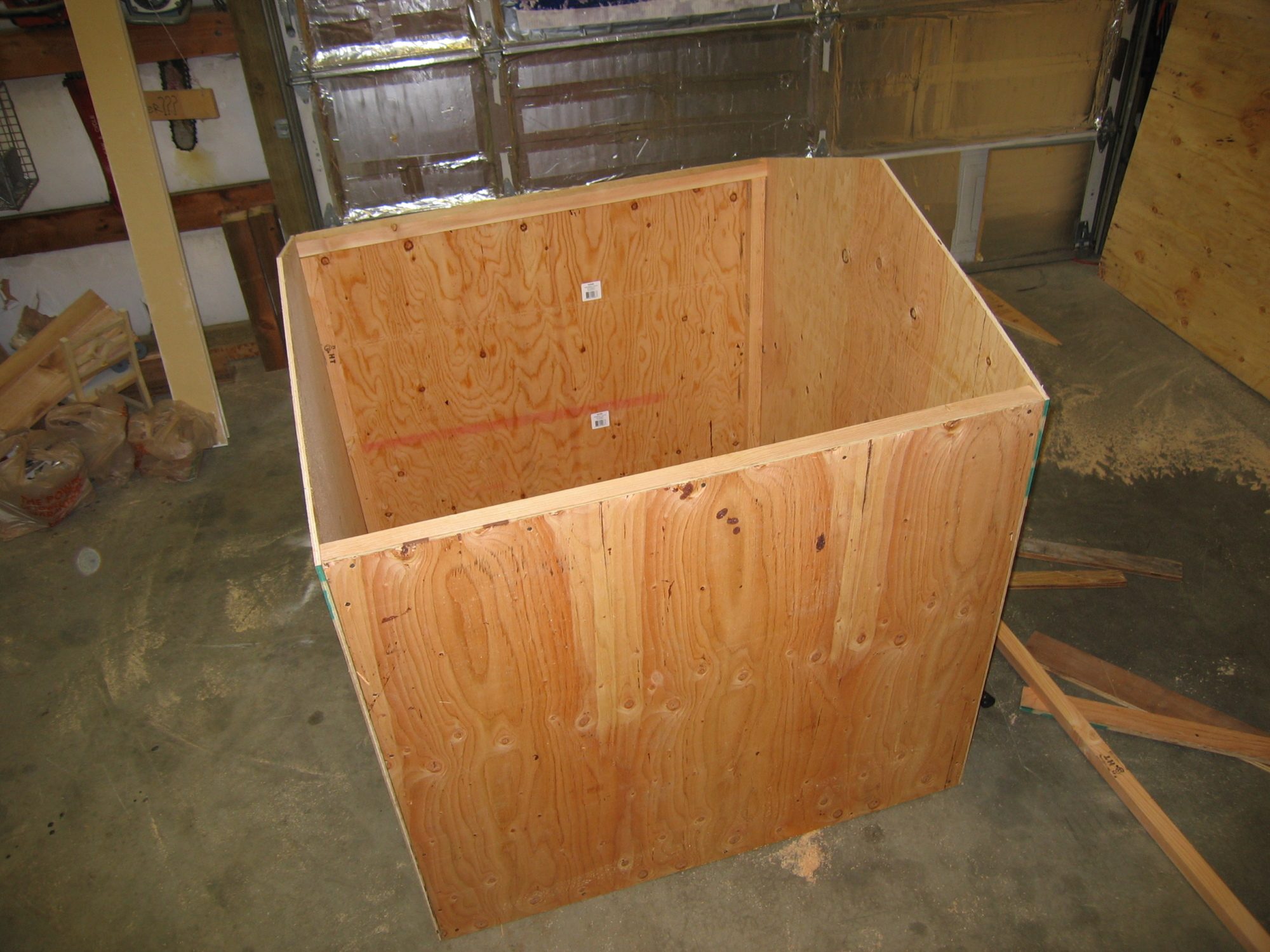 Go ahead and trim out along all the bottoms of all the panels at this point, take the time to caulk everything especially under where the nest box is going to be because getting a caulking gun in there later is going to be next to impossible.