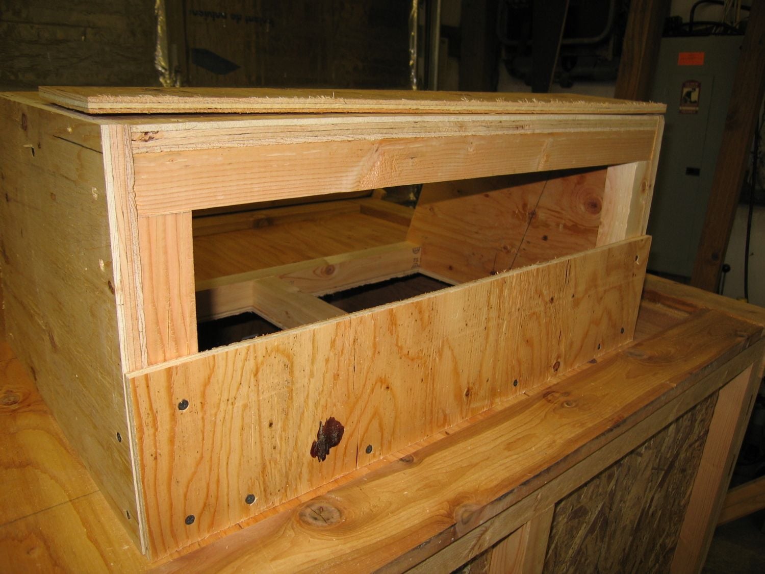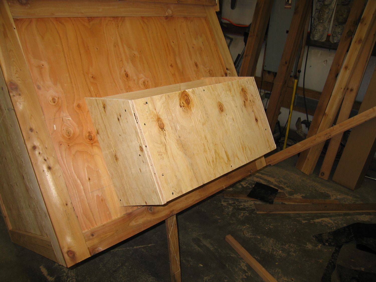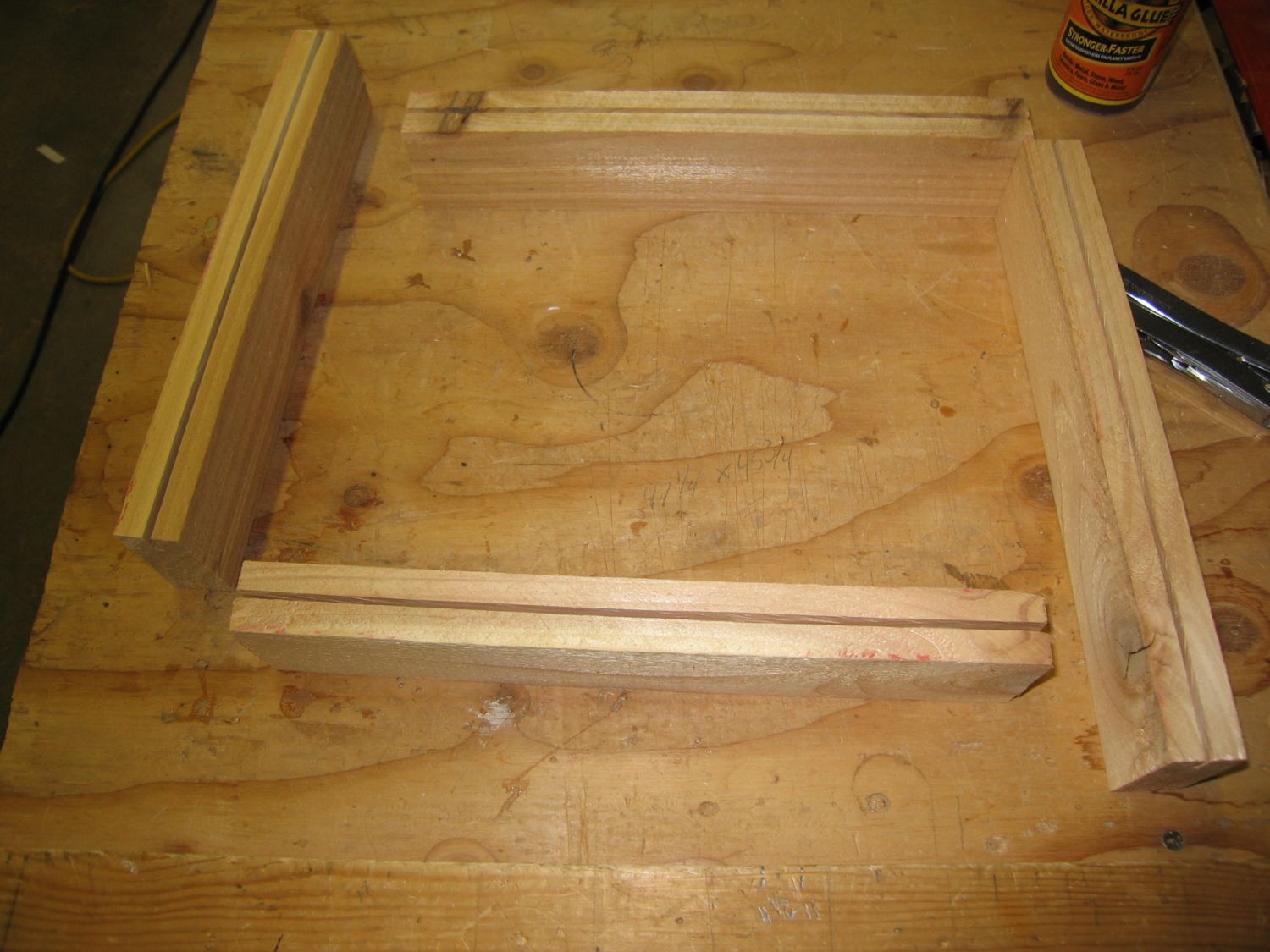 At this point you’re probably running short of decent scrap pieces so you may have to piece together some of the 1/2” plywood to make up the bottom of the nest box.