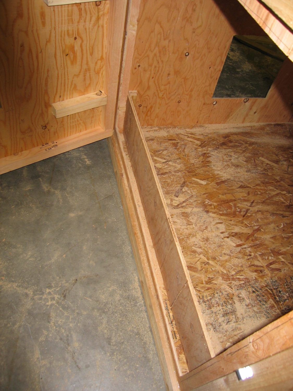 Now fill in with some 2x2 framing at the bottom of the nest box between he coop, and front panel of the box itself.