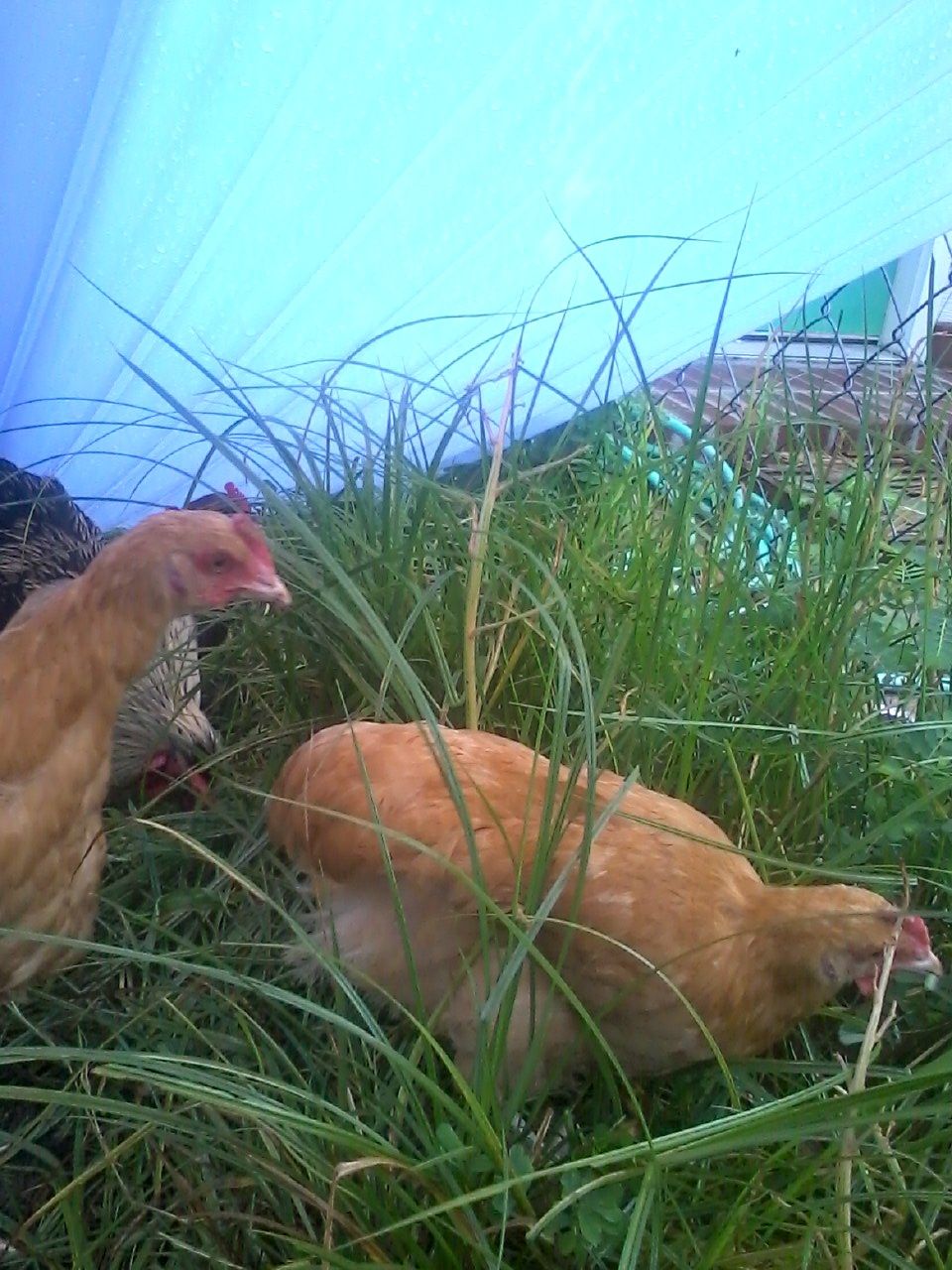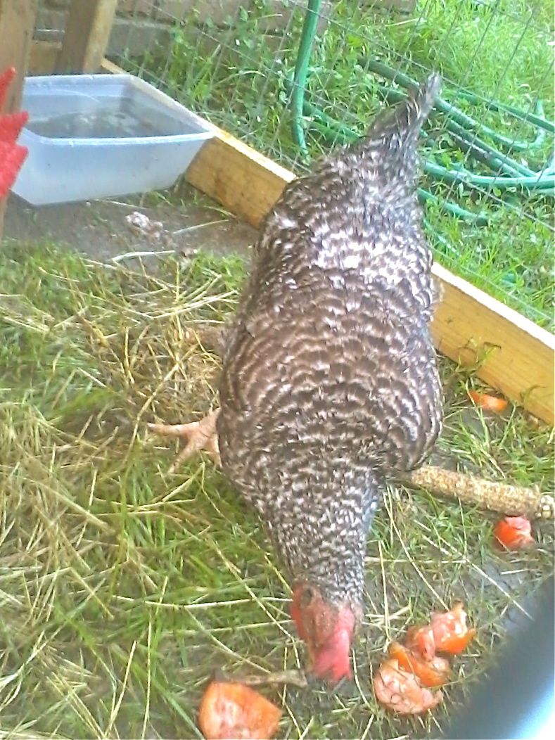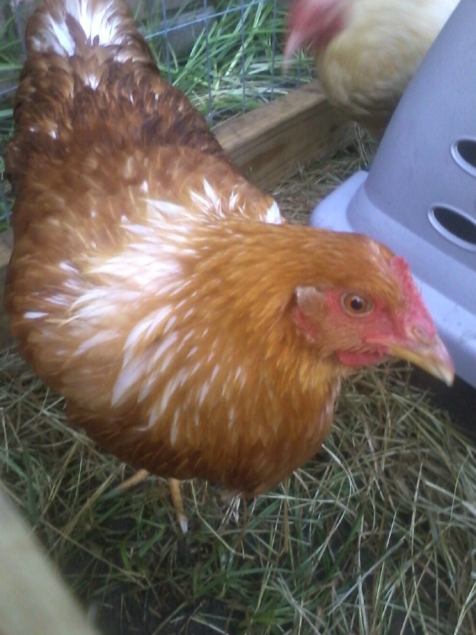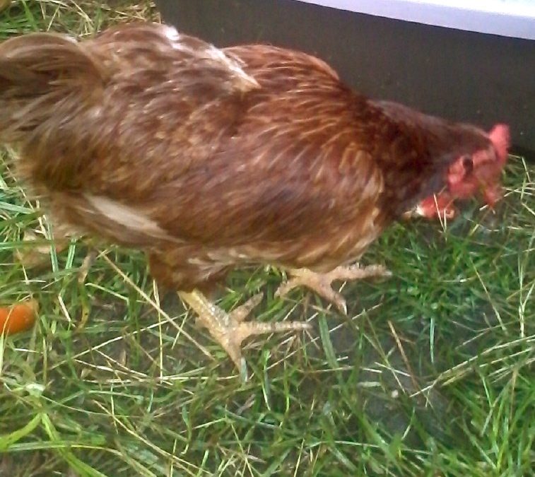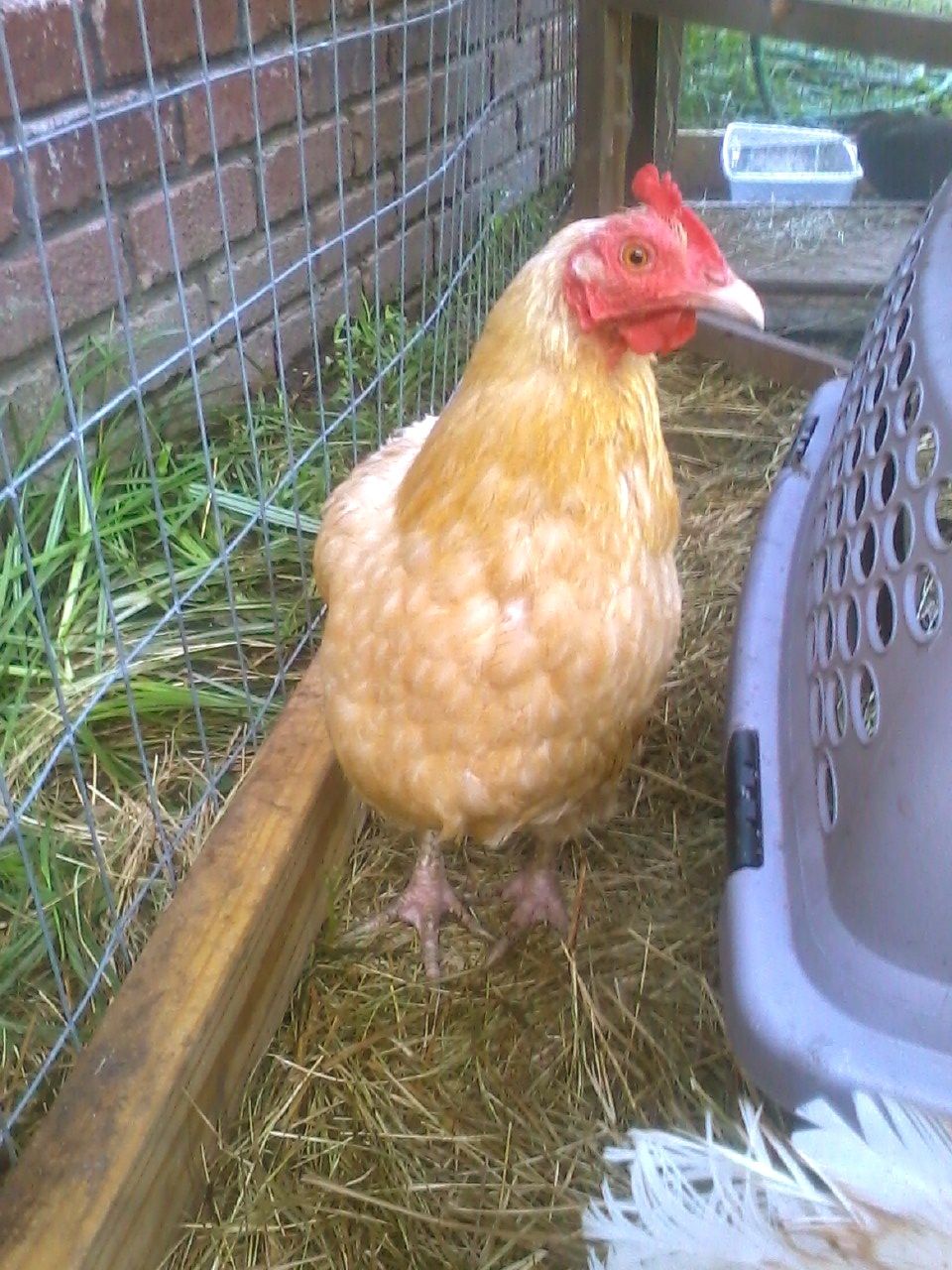 Ambassador Neechix, a flamboyant Buff Orpington cross, reporting for scavenging duty.