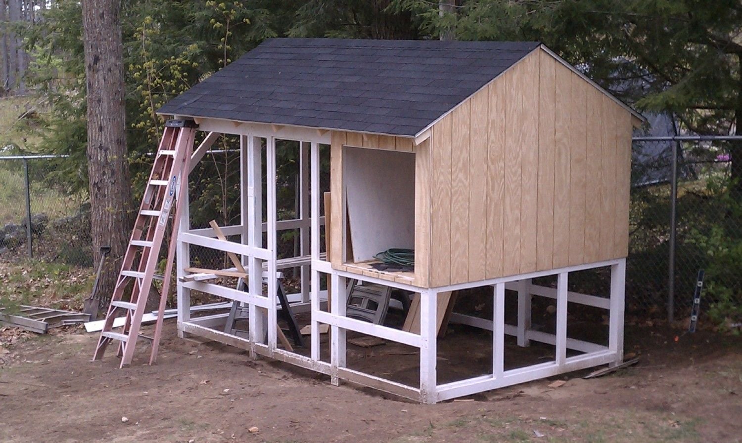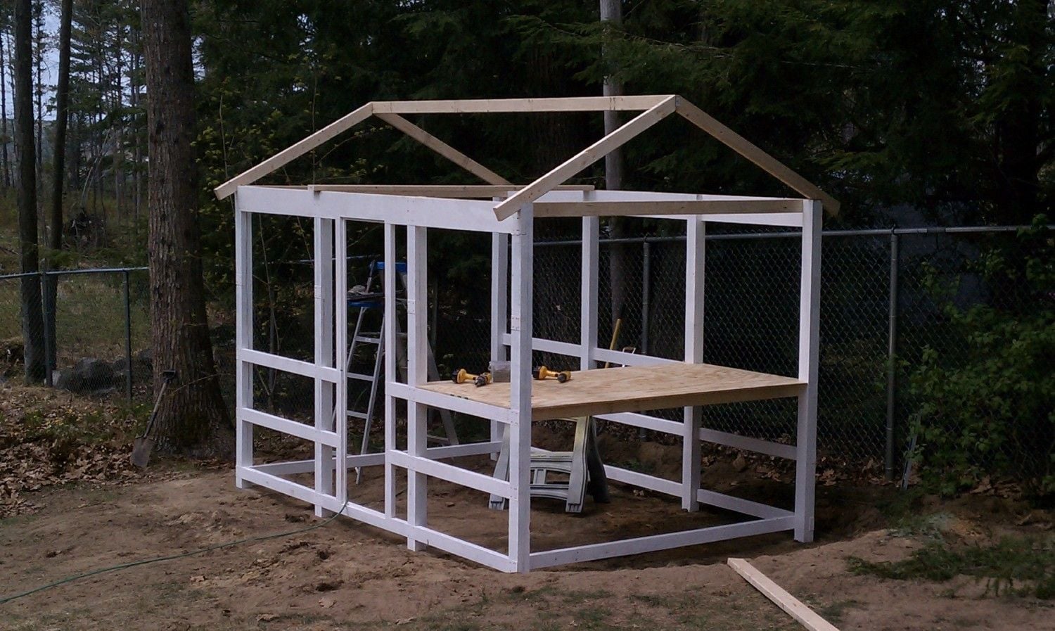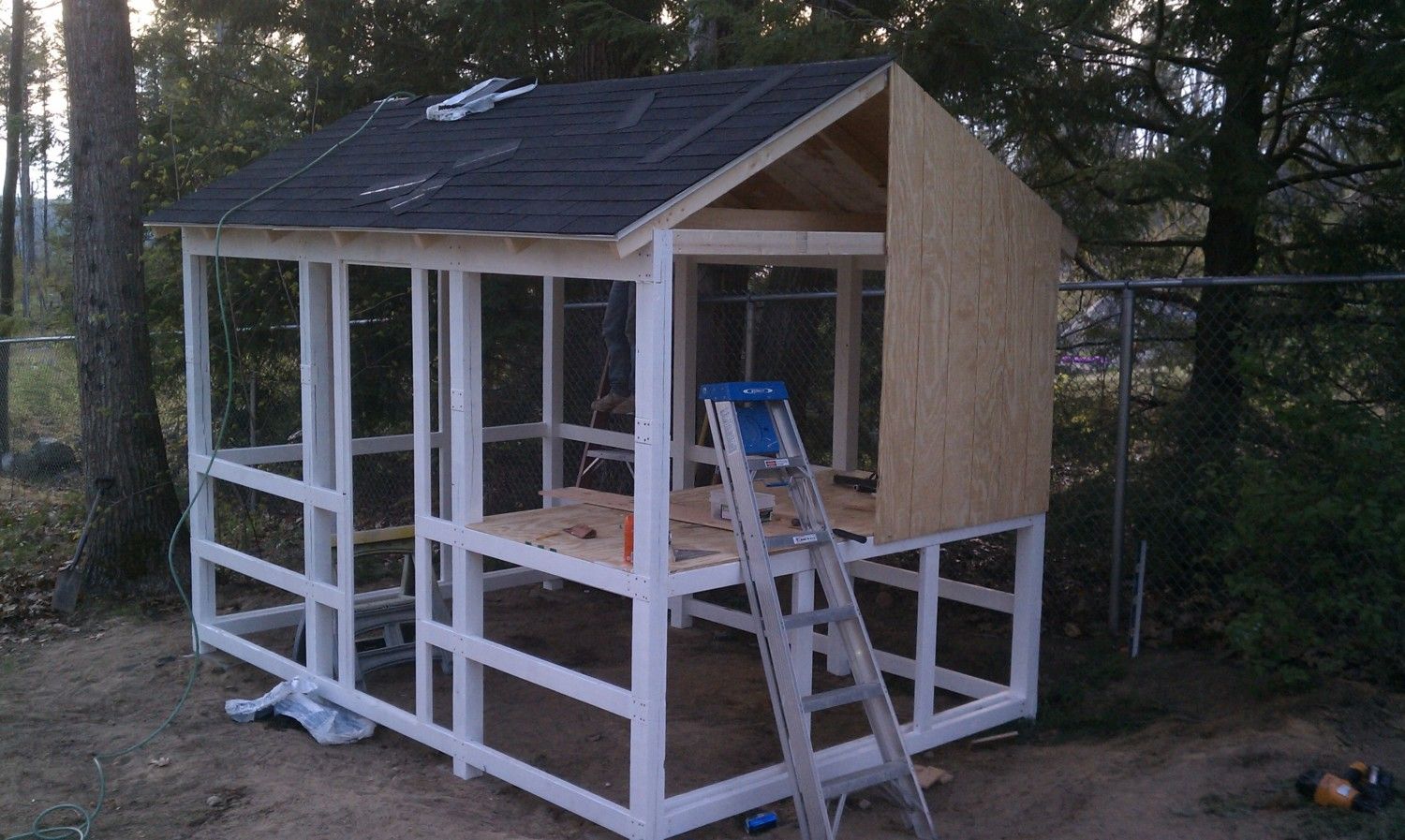 After pouring over what seemed to be a million designs and changing my mind 12 times, my uncle decided enough was enough, after all, the chicks were about 6 weeks old and my husband wanted them out of the house. We decided on a box design with the built in run. the structure is 8x12 with the coop part 4x8, with a 2x2 section in the back blocked off for a storage area.