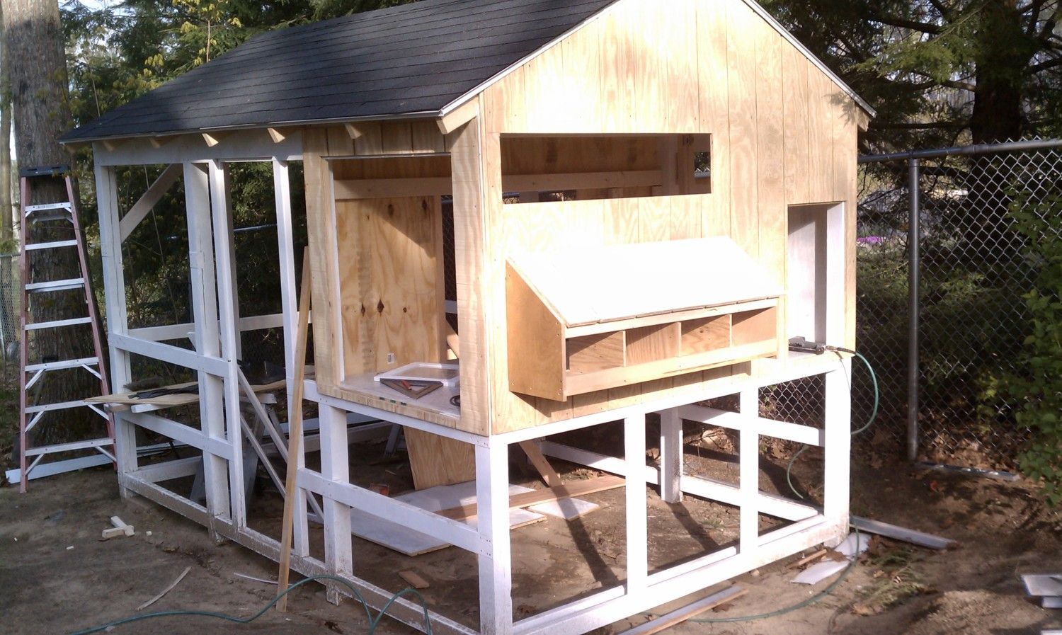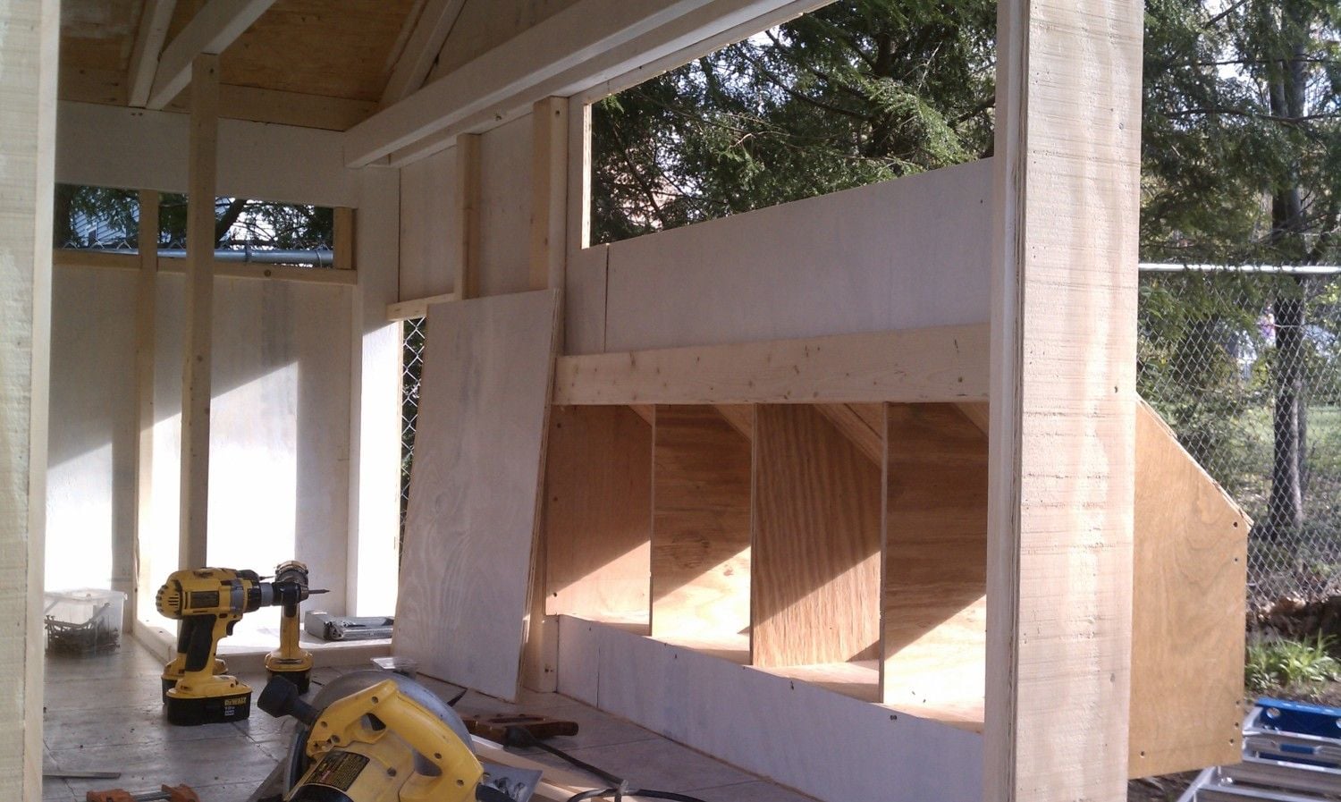 We made the nesting boxes separate and them slid them in after. The framing for it was done after.