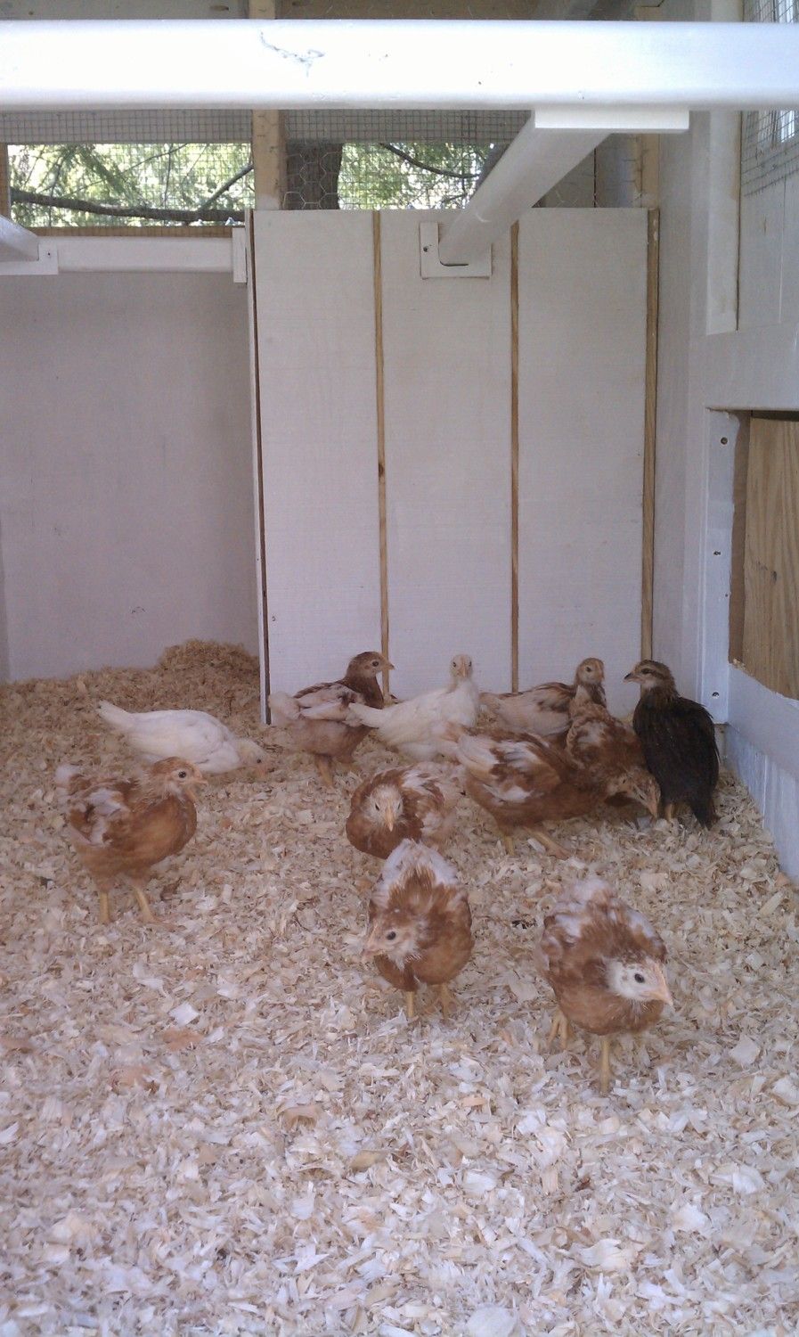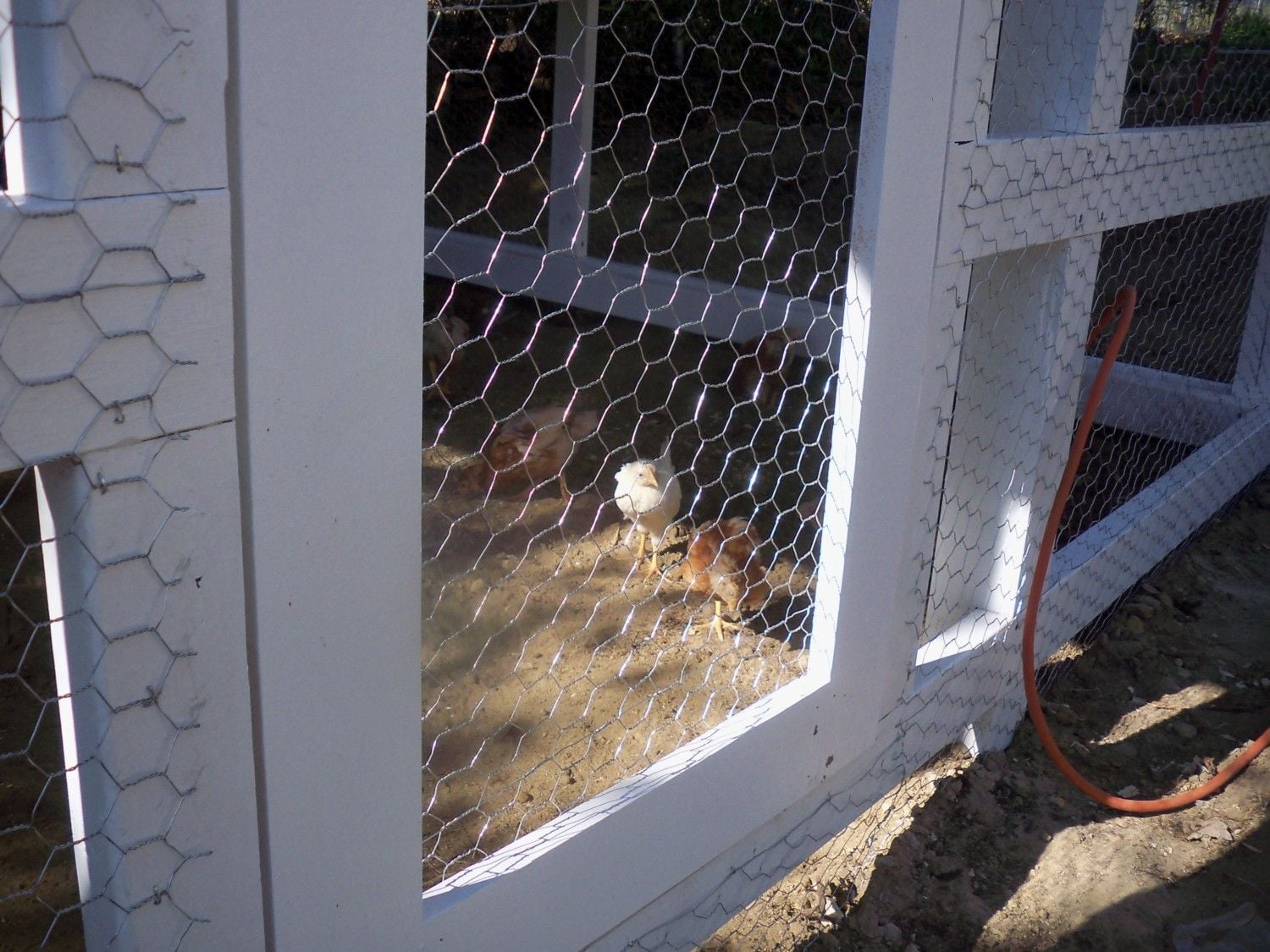 the babies checking out the dirt! we are going to wire at some point, but for now we have an extension cord for a heat lamp