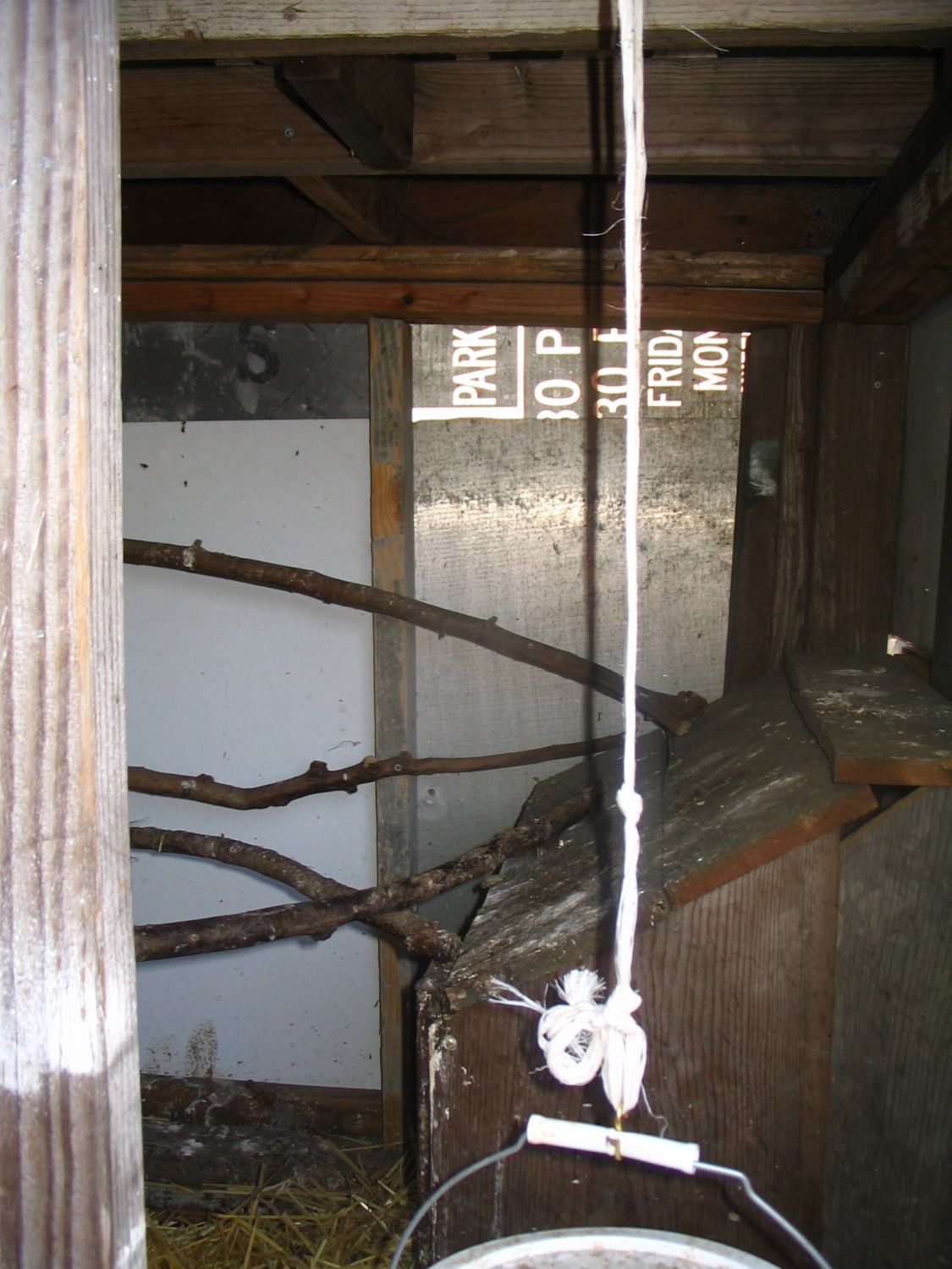 inside of coop (pre cleaning). i add bedding when needed, clean once a month or so. i have started using coffee chaff.