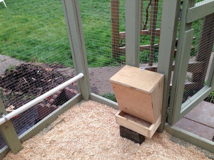 Auto-Chicken Feeder, just lift the top and fill it with feed and it will keep filling the bottom trough.