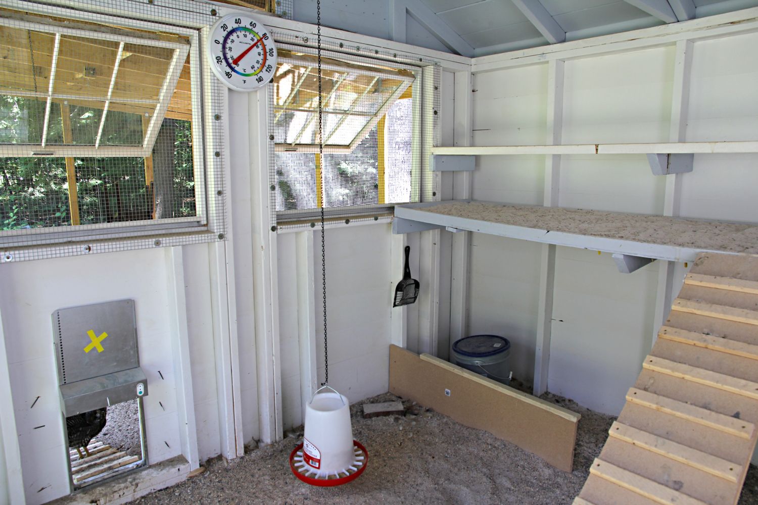 Awesome coop...love the little details you've included in your coop. I've been contemplating putting my feed in the coop-guessing that's what you have stored in the metal trash cans.