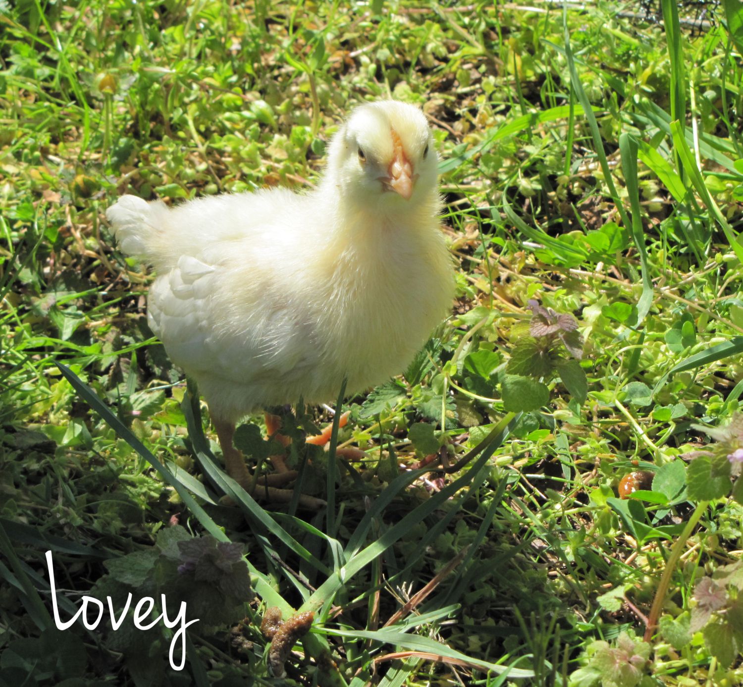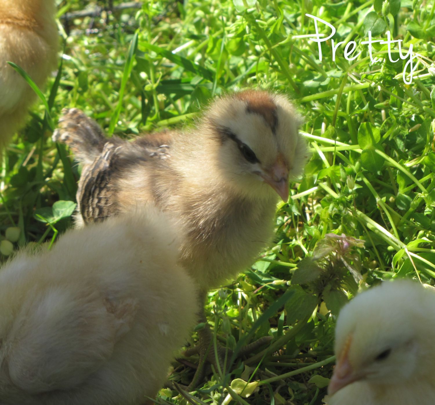 The ladies are housed a 4' x 8' raised coop and 10' x 20' fenced in lot. We've added fruit netting to keep the little heads out of the fencing and as a hawk-proof top to the 6' high panels. Right now their diet is filled with high-protein mash and limited treats of grass and clover. We can't wait until they are old enough to start adding a little more variety to their diet.