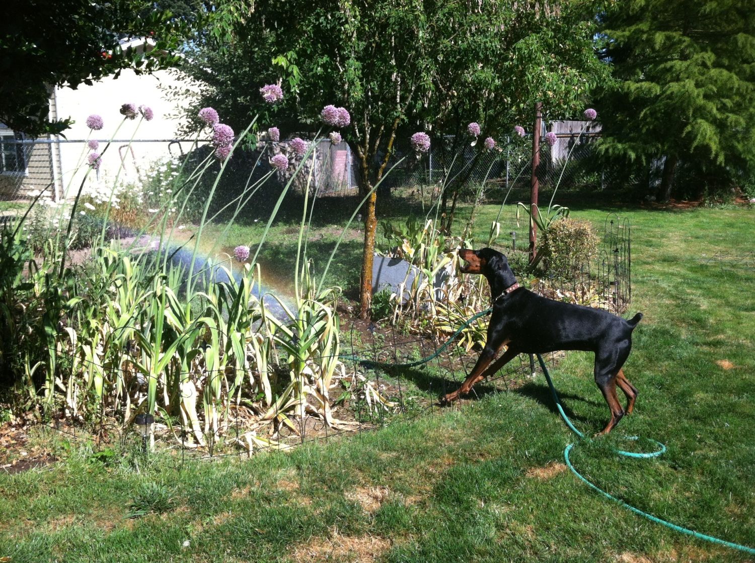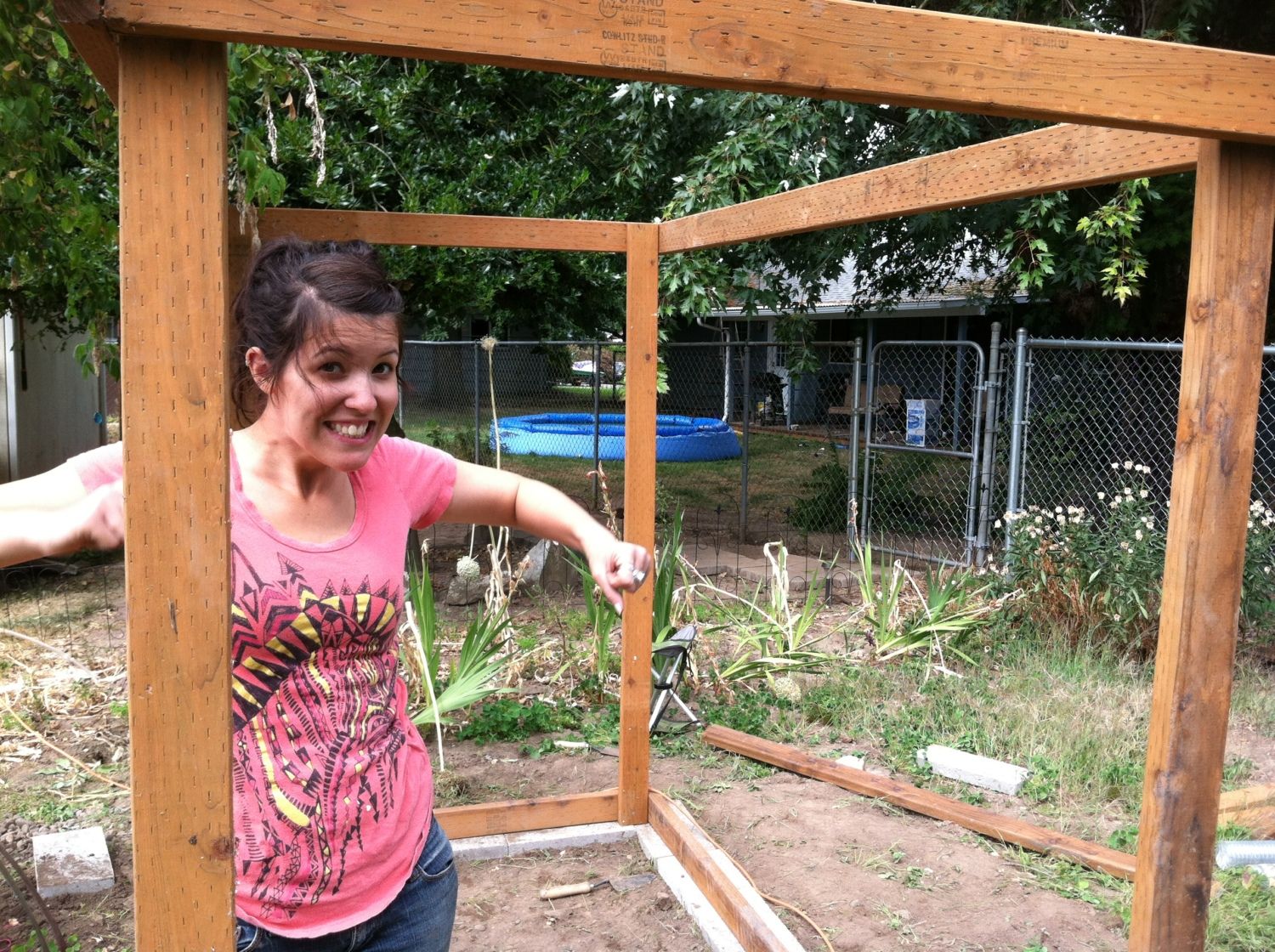 This was the space that would be dedicated for the coop. Misha loves when I water the yard.
