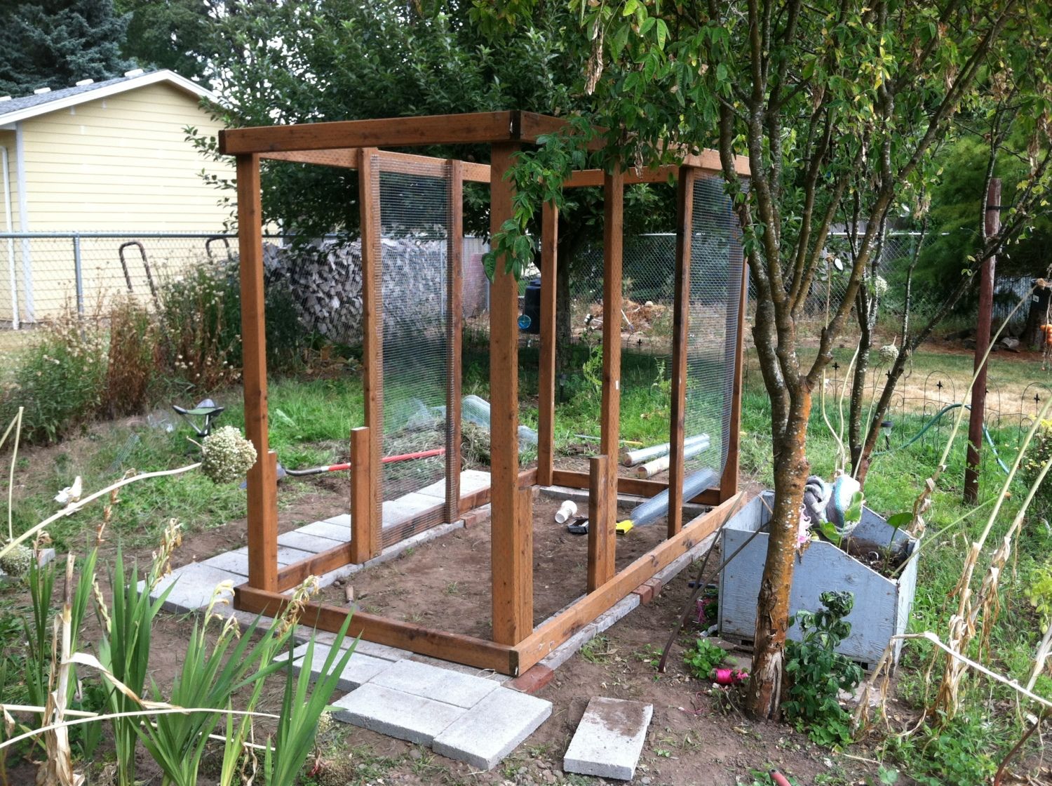 Here is another angle of how the progess is going. We used cloth wire to put the sides on.