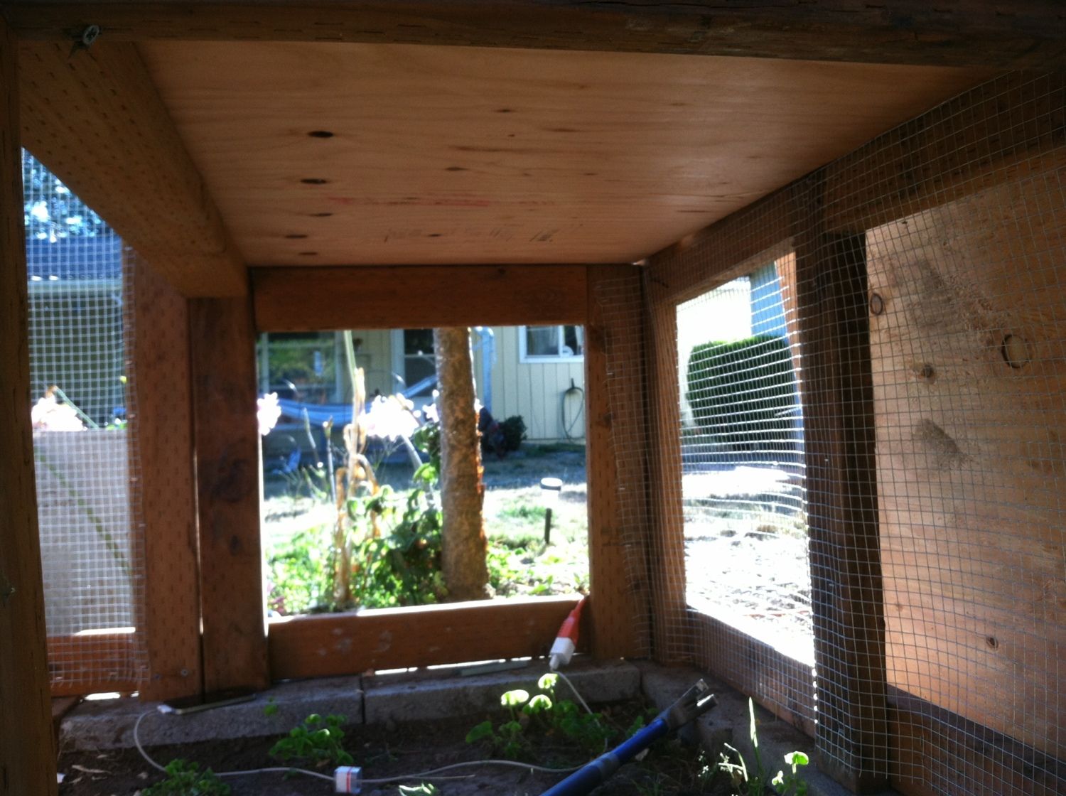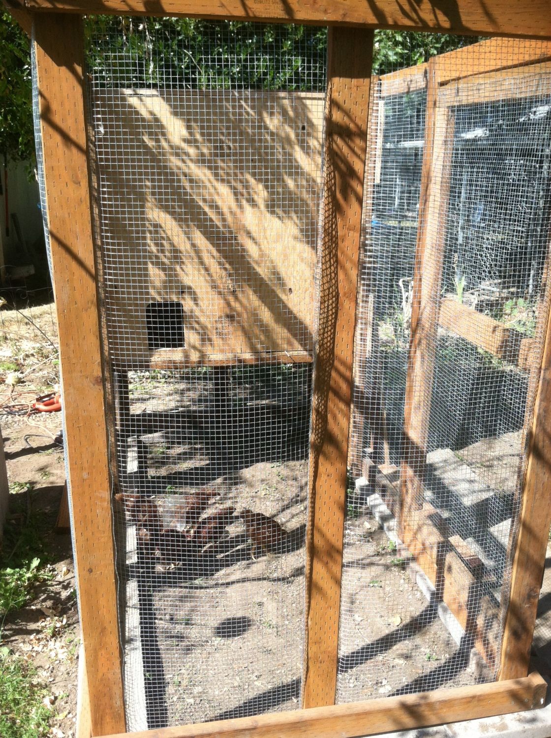 The window was made using 1x1's and plexi-glass and liquid nail caulking. I used my jigsaw to cut the hole out. The inside doesnt look nearly as nice but I guess it doesnt matter if you're a chicken.