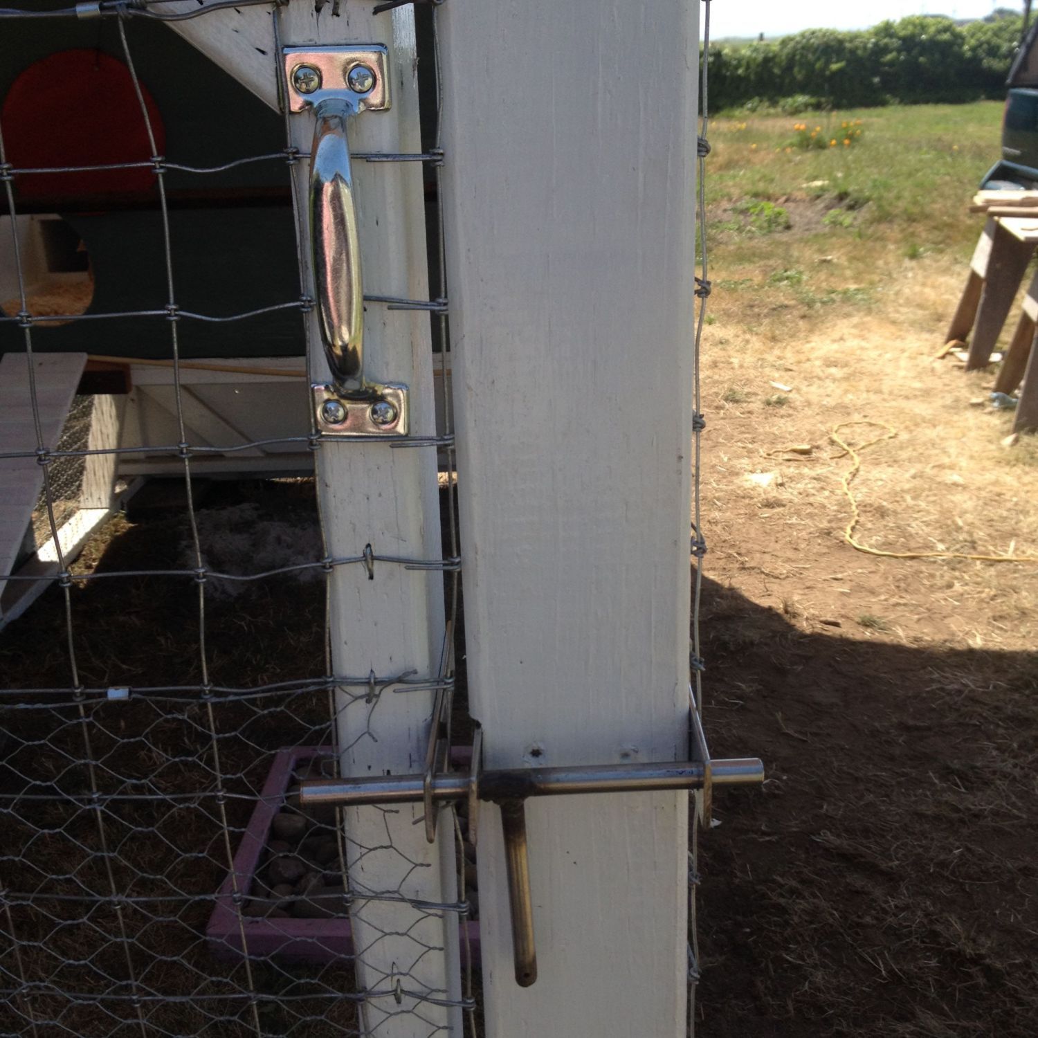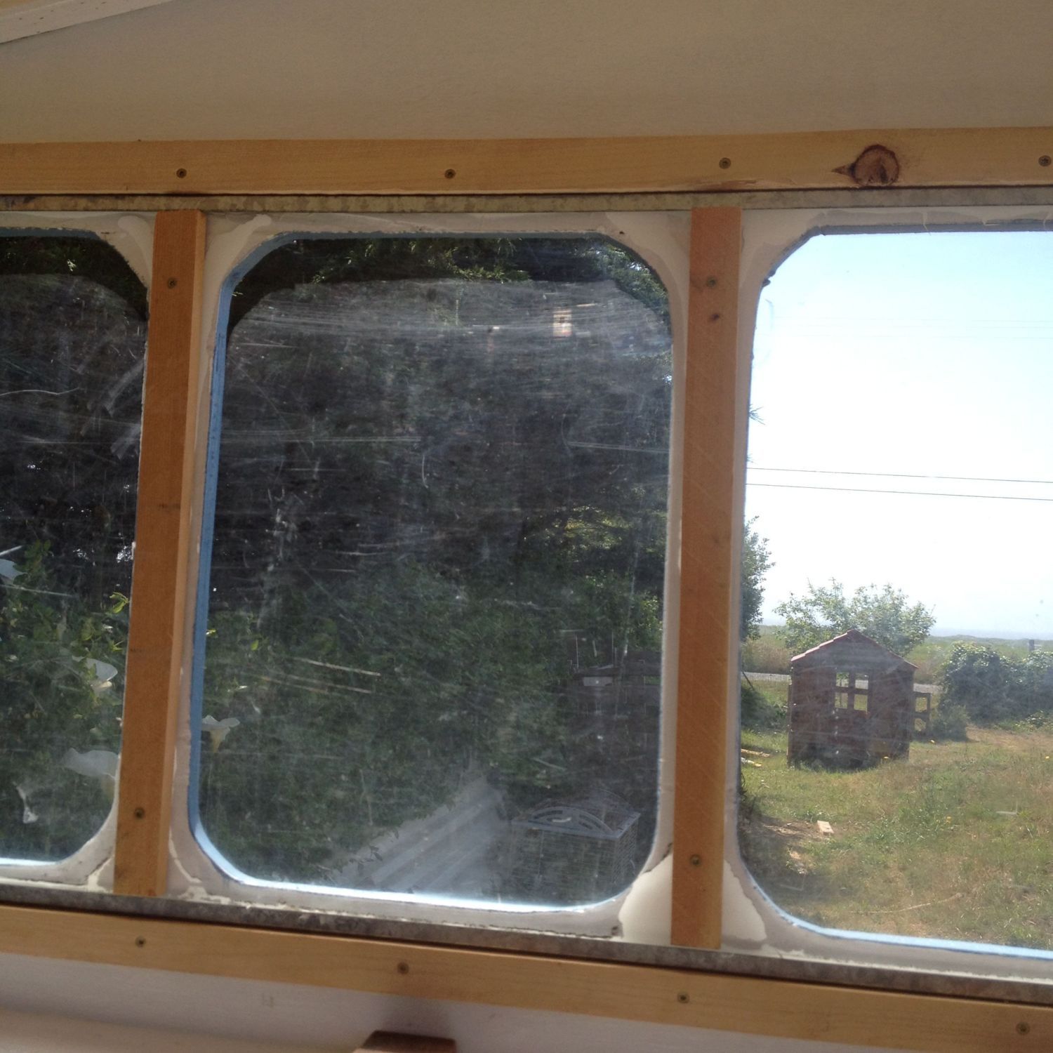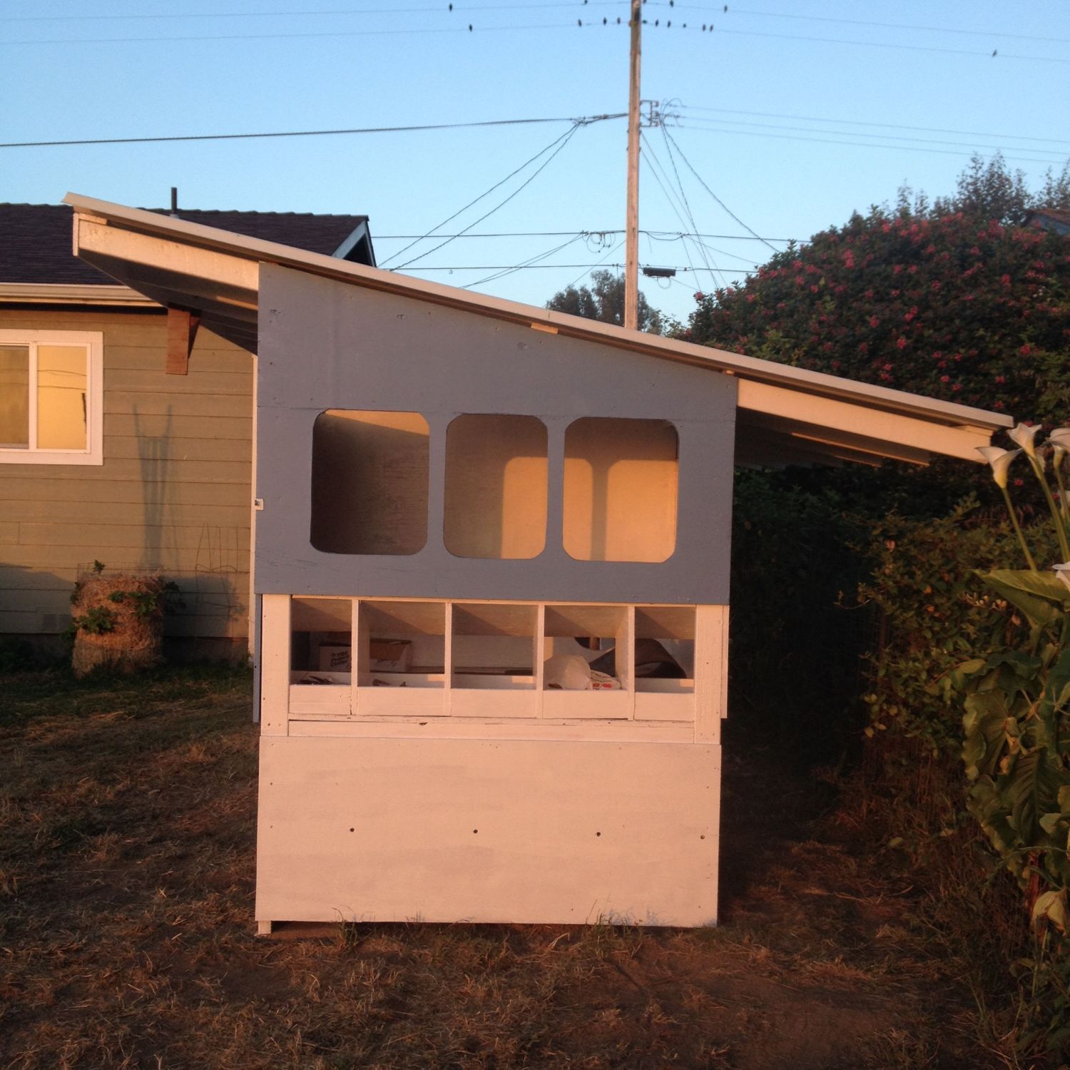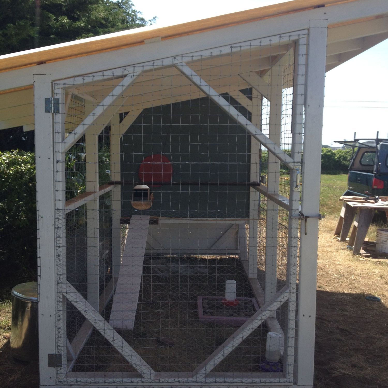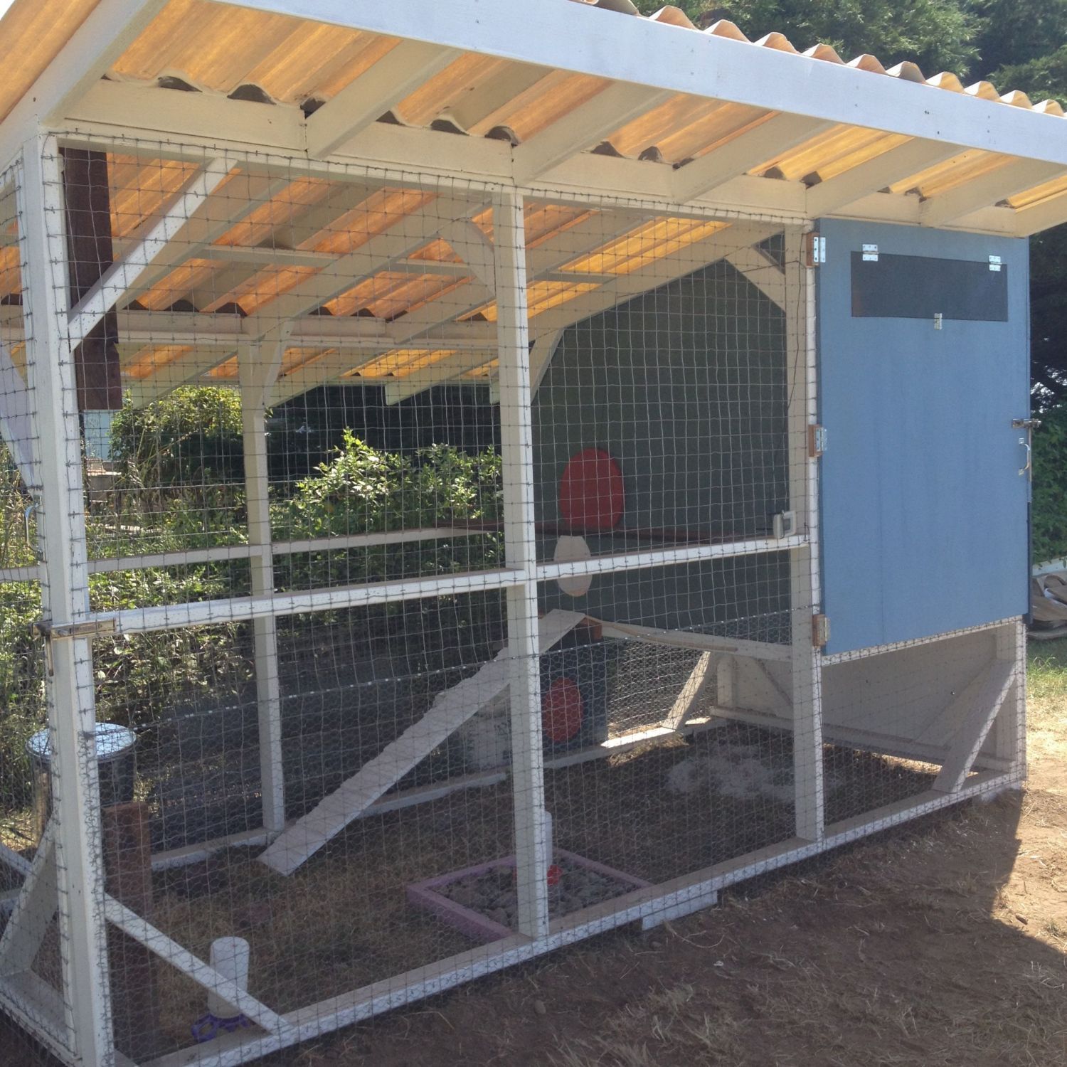 The chickens have a view of the ocean, which cannot be seen with my camera. This should really be my sun room instead.