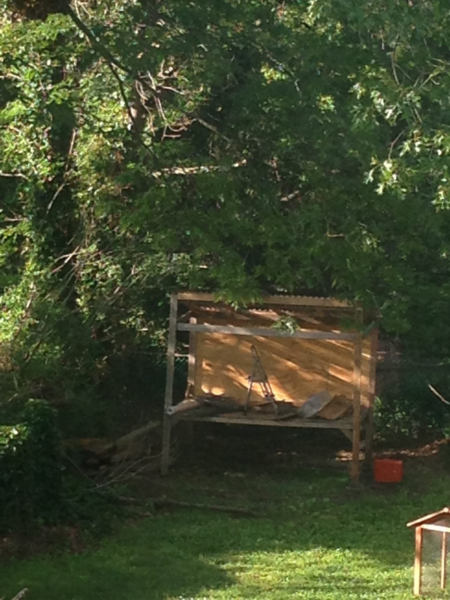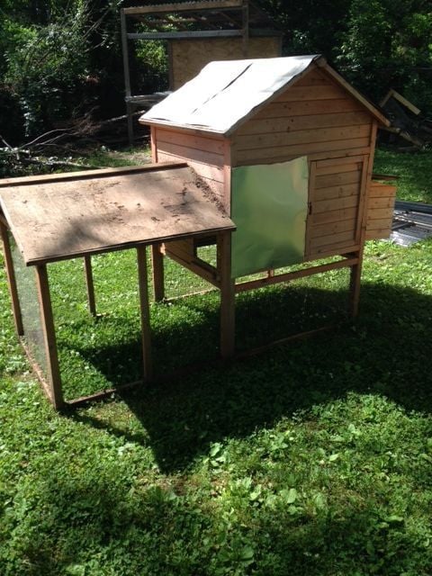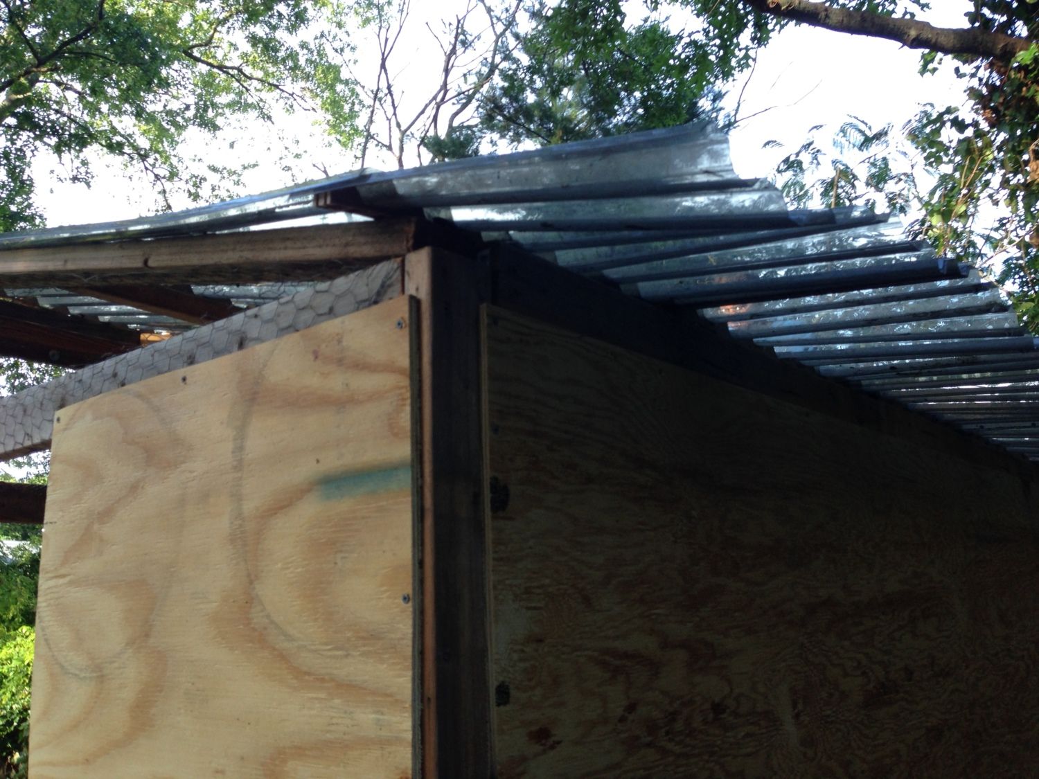 Using the old corrugated roof we used that again. The chicken coop is in the shade and we have a window on one side and the entire mesh sides with hardware cloth. But I think that this way when the Chickens are in teh coop it still gives them more light.