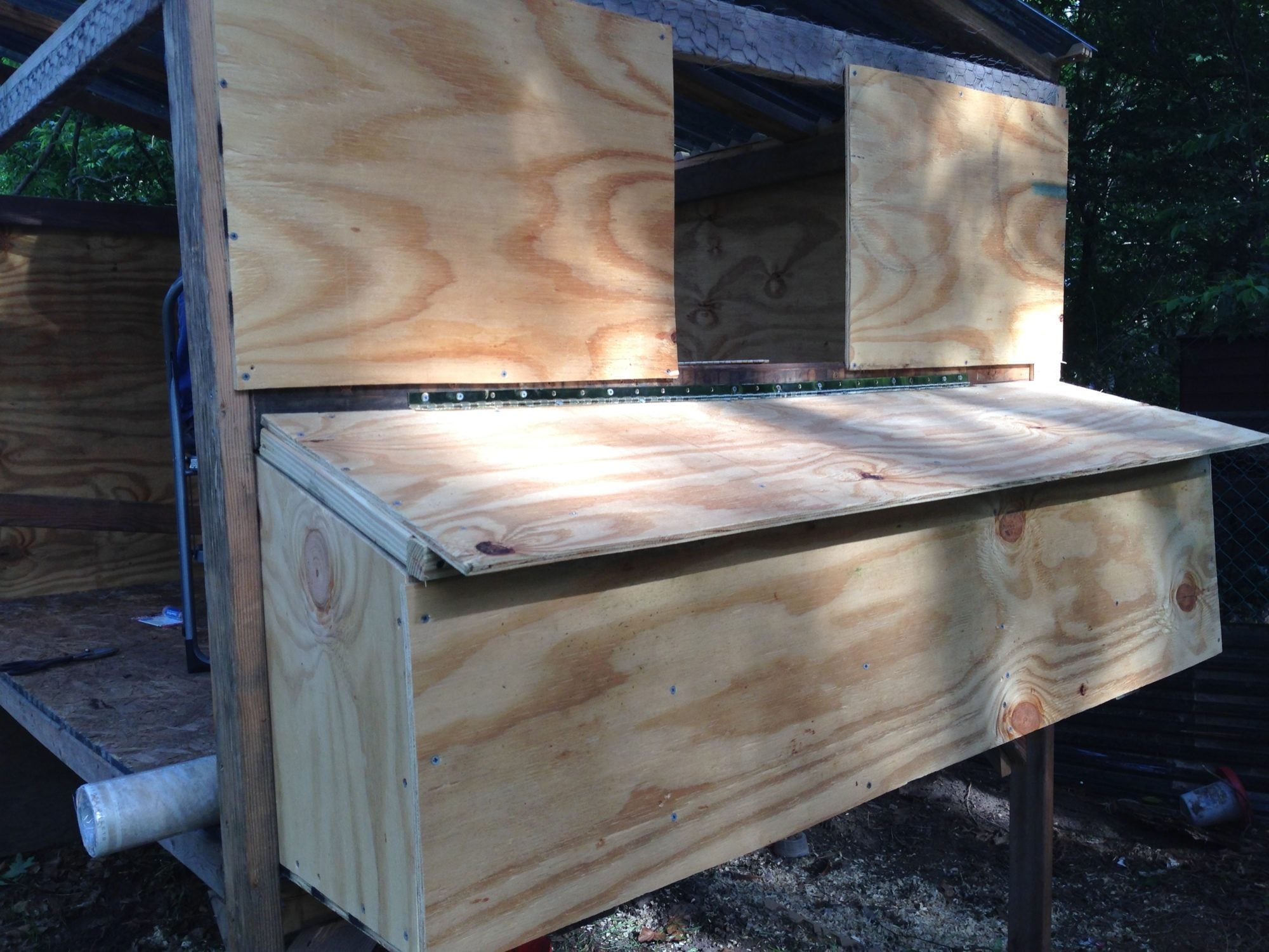 To create these 5 nest boxes took some time but it was worth it. It came out great. I will eventually put some corrugated roof panels that I have left on this so that the water runs off. .