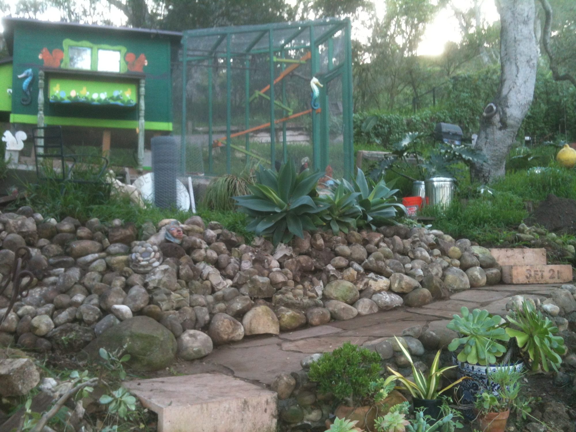 We love our hillside coop under the oaks. The girls seem to like it fine too. Since living under the oaks can be dark, I have put in lots of windows and even a skylight in to maximise the natural light. The attached secured run is completely lined with 1/2 hardware clothe to insure the our squirrel friends stay out. Inside the run is a series of ramps and roosts to keep the girls entertained when they can't free range.