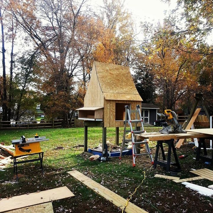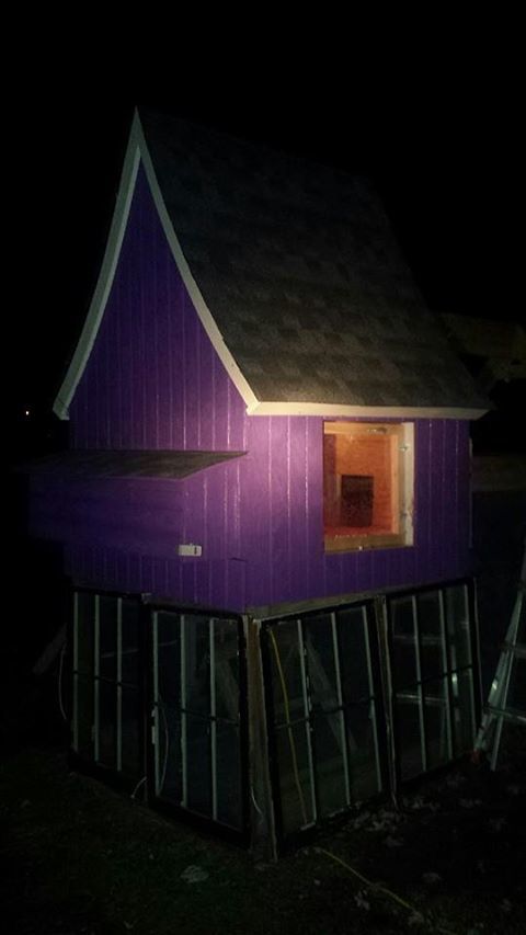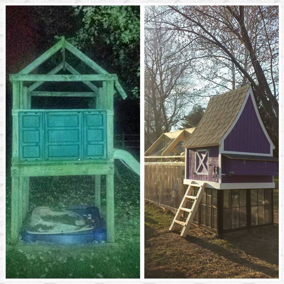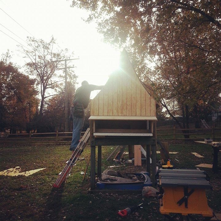 My husband painted in the dark so that the coop would be my favorite color by the time I made it home from work.