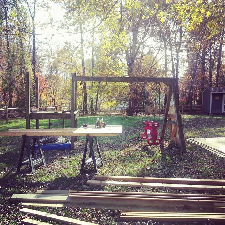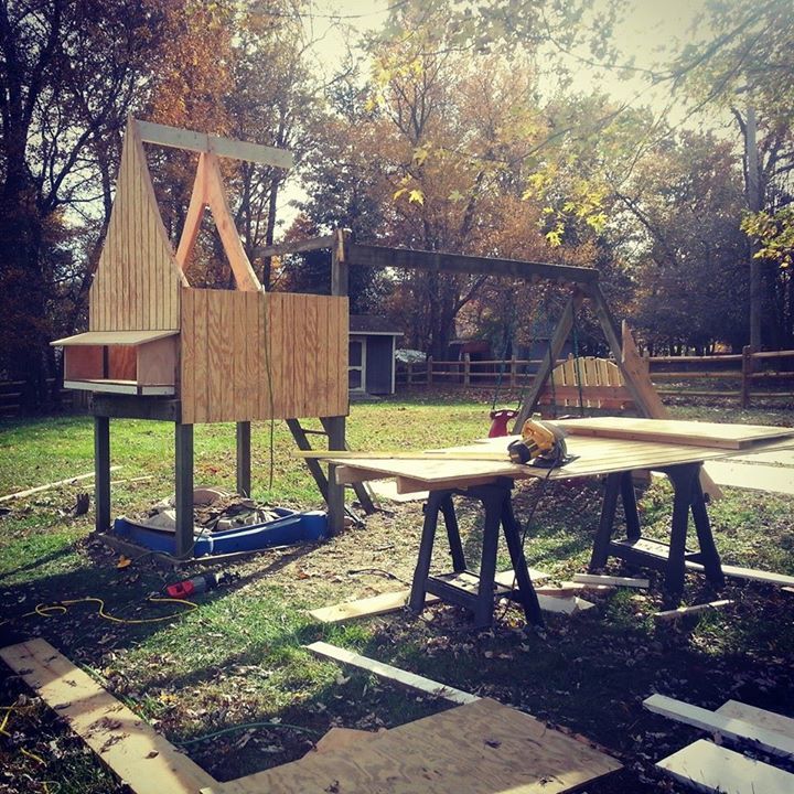 The interior. It wasn't until we got the floor in that we realized the 30 year old play set had become out of level... Very out of level... But we fixed it.