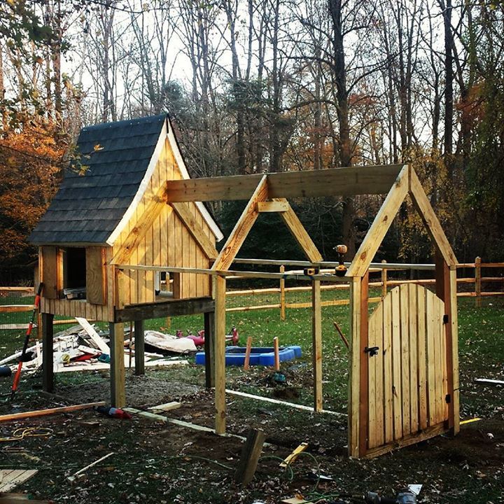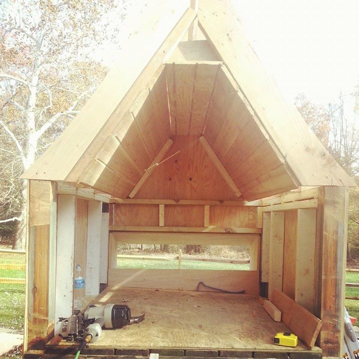 I've always wanted chickens, and my husband wanted to get rid of the not so new eyesore of a swing set in our brand new back yard. While his job is more managerial now (he runs a construction company), he's truly a carpenter - and a good one. He built this coop for me using left over materials from old jobs.