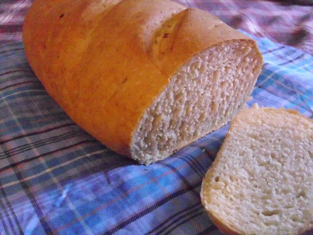 Here's the trick to get your bread to come out right. You need to roll out the bread into a rectangle, then roll up into a loaf, like you would when making cinnamon rolls. Lightly slice the top of the bread to get a diagonal cut look when baked. Let loaves rise (I put my loaves on separate cookie sheets) for 20-25 minutes.