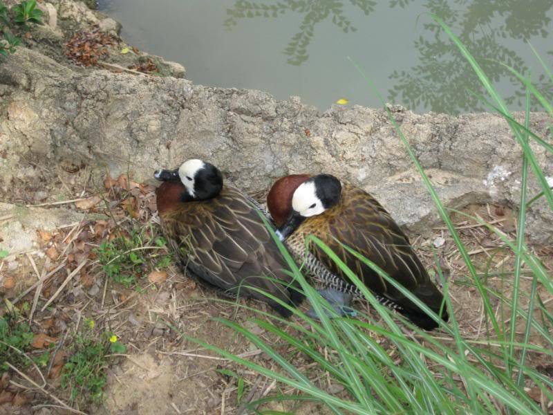 Breed Details: The White-faced Whistling Duck, (Dendrocygna viduata), is a whistling duck which breeds in sub-Saharan Africa and much of South America. These ducks have dark plumage contrasting with its white head, making it an easy duck to identify. The bird is slender with long legs and neck and displays an erect stance when on land. Both sexes look similar; the juveniles are duller in color, with grayish heads. Adults weigh about 1.5 lbs. In the wild they occupy a wide range of habitats including: fresh water lakes, dams, reservoirs, marshes, and swamps with still water and plentiful vegetation where they feed on plant matter, seeds, grain, as well as aquatic insects, mollusks and crustaceans. Feeding mostly occurs at night so nocturnal flights are routine. White-faces are highly social and live in flocks numbering in the hundreds and are often seen mingling with fulvous whistling ducks. Birds are often seen engaged in mutual preening which is important for permanent pair bonding. As indicated by its name this duck has a distinctive call described as a clear three-note whistle "tsri-tsri-trseeo". The call of an anxious or upset adult is a single "whee". Although it has the long neck and legs of its tree duck brethren, it does not spend much time perched in trees but prefers instead to lounge, relaxed on one foot on the sandy banks of the shore. Not endangered but on Appendix III of CITES (listed as threatened by a specific country). Breeding season varies according to location, both in the wild and in captive collections. The nest is usually located on the ground in tall grass, scraped in the dirt, but sometimes may be in reed beds on the shoreline and even occasionally in the fork of a low waterside tree, although this is not at all common in aviary birds. Clutch size is usually 9-12 smooth, creamy-white eggs, which are incubated for 28-30 days. Parents have a strong pair bond and both help care for the young, including feeding, brooding, and protecting them. In the aviary these ducks do well with dense plantings and extensive amounts of water that allows swimming, so at least several feet deep. They are extremely gregarious outside of their breeding season and should be kept in large aviaries, especially if housed with smaller species as this large duck can sometimes be pushy and bully the smaller specimens in a mixed collection. Larger areas and dense cover allow birds to be "out of sight and out of mind". A shelter should be provided for severe weather and on cold nights with a deep bed of straw to stand and sleep on as they are susceptible to frostbite in cold weather. They can be kept fully-flighted in covered aviaries but should be pinioned otherwise as they are strong fliers and like to wander. Elevated nest boxes can be provided as well as ground boxes. Most hens will build their own nest on the ground concealed in thick grasses. Breeding season in the US usually occurs from late April - June. Hybridization can occur between other whistling duck species although this is not common when pairs are well bonded and there are no extra males. Hybridization has also been reported with the Rosy-billed Pochard. When feeding these ducks a pelleted or crumbled waterfowl diet should be available for them but grain and green stuff is readily appreciated as a treat. This duck is considered hardy and easy to keep in an aviary setting so beginners can keep this handsome duck. Remember plentiful, clean water in addition to plantings and perches should be provided in order to maintain happy, healthy ducks. And if you love the look of these dashing birds be sure to give them a try. |