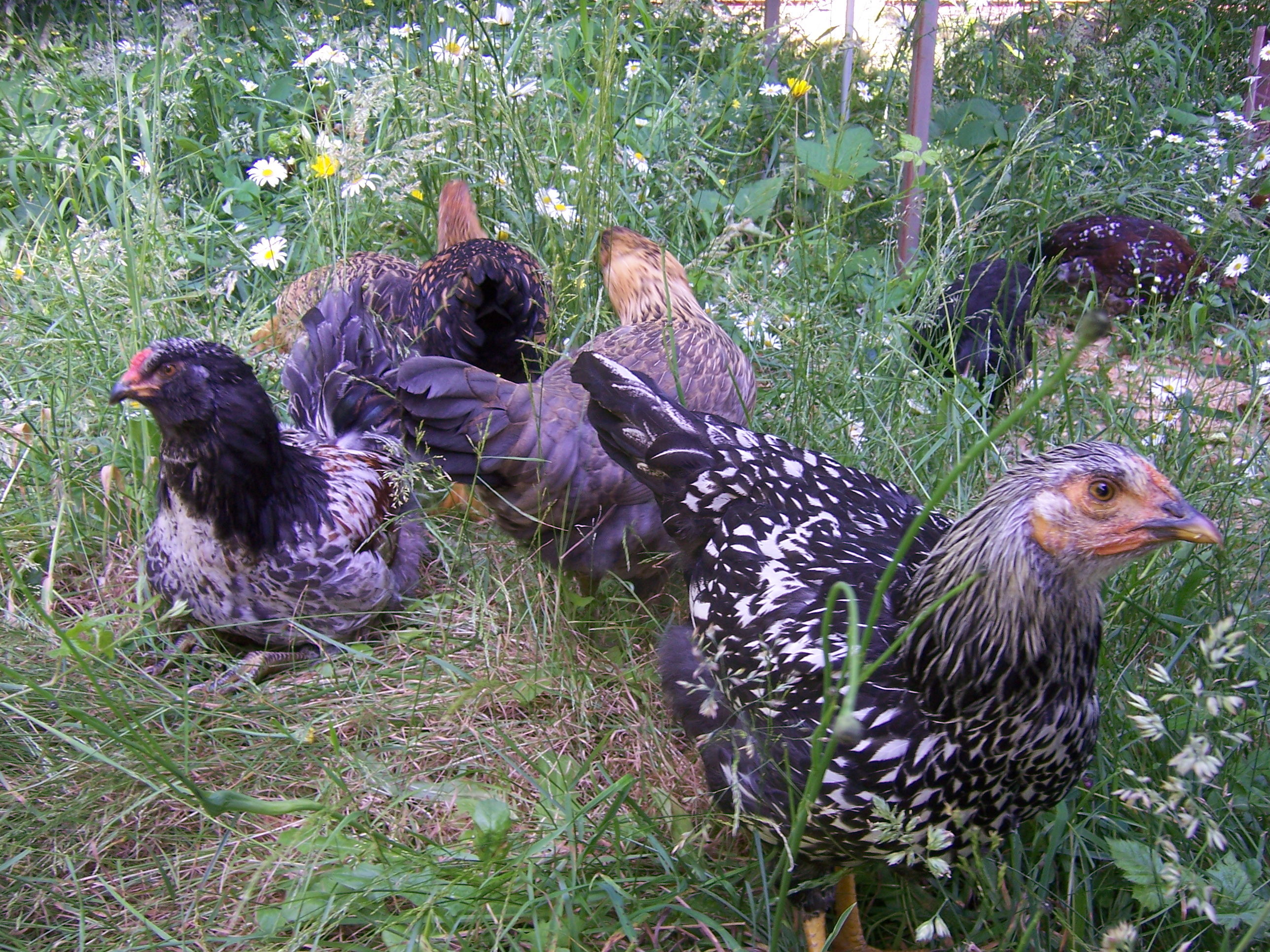 red hen in the rain
