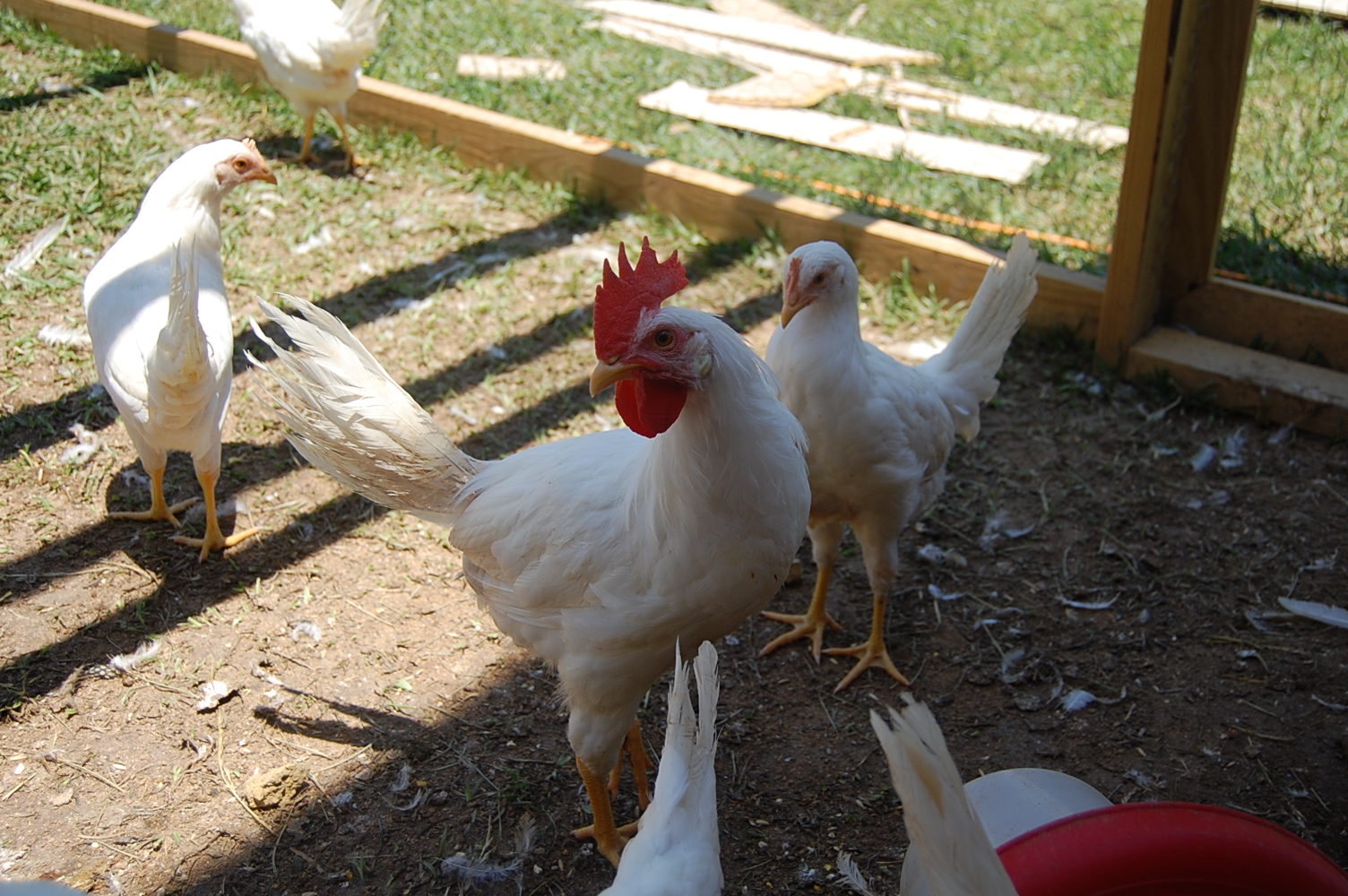 Rhode Island Red and Pearl White Leghorns