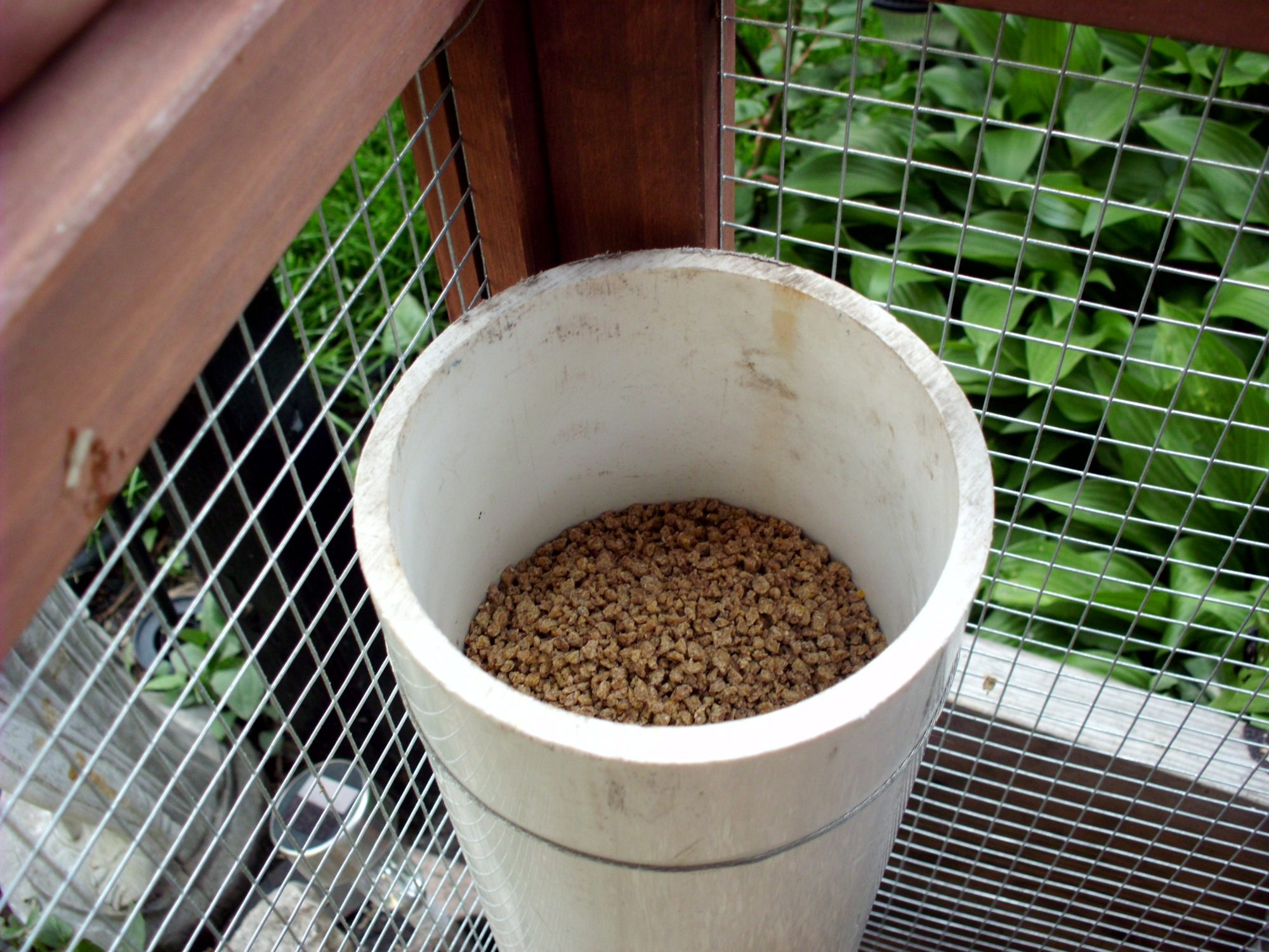 Coop. food, water and chickens