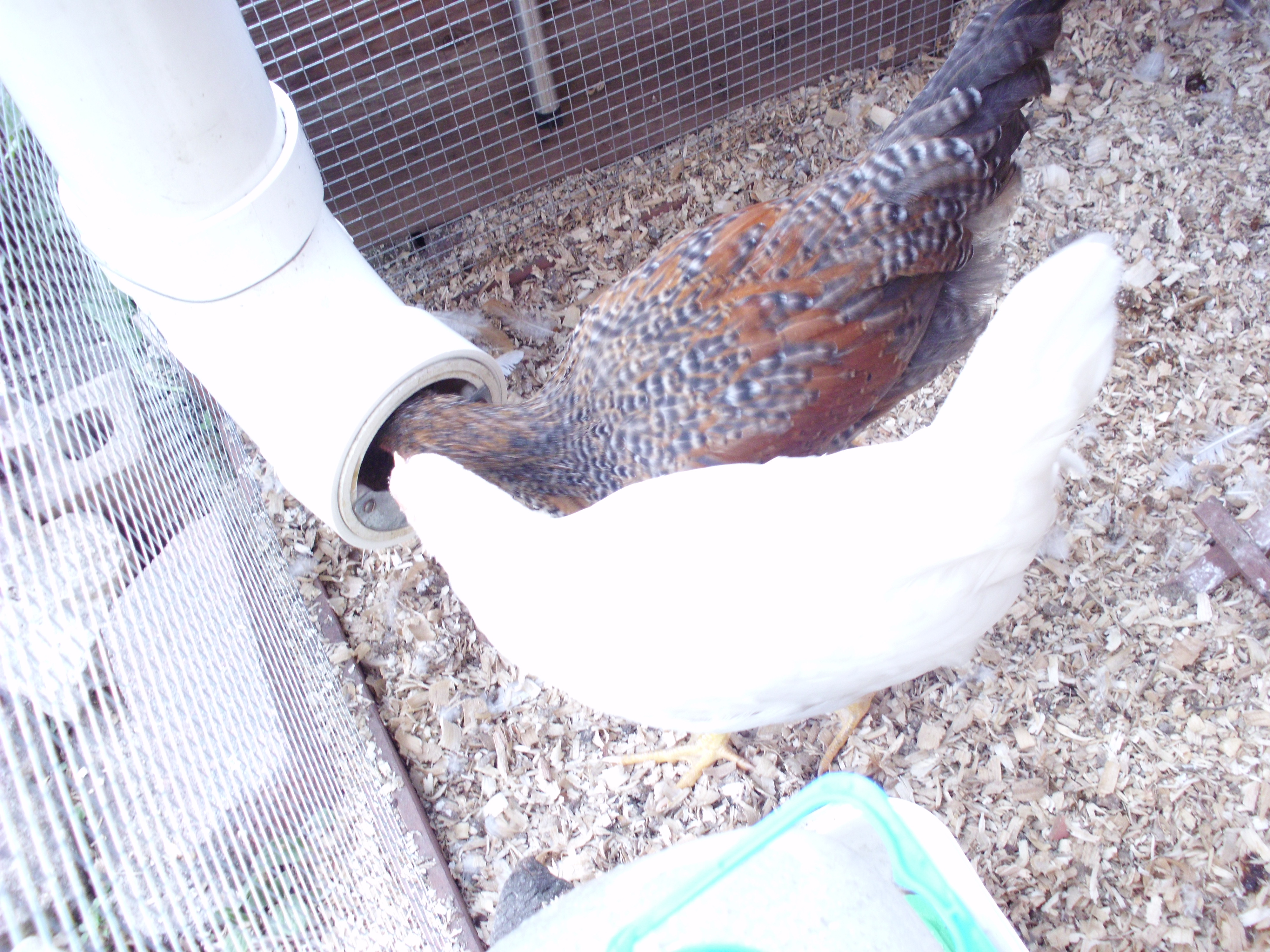 Coop. food, water and chickens