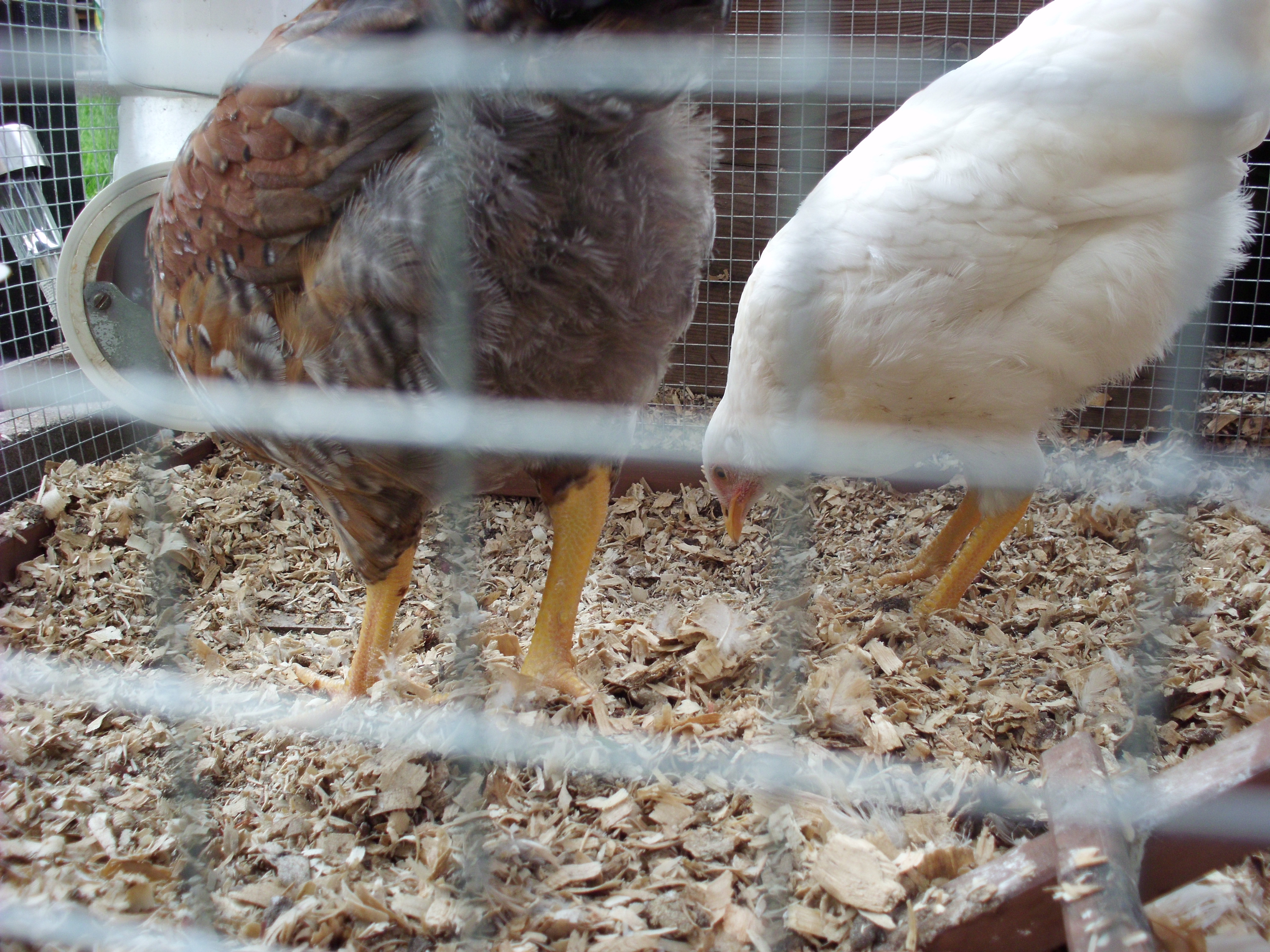 Coop. food, water and chickens
