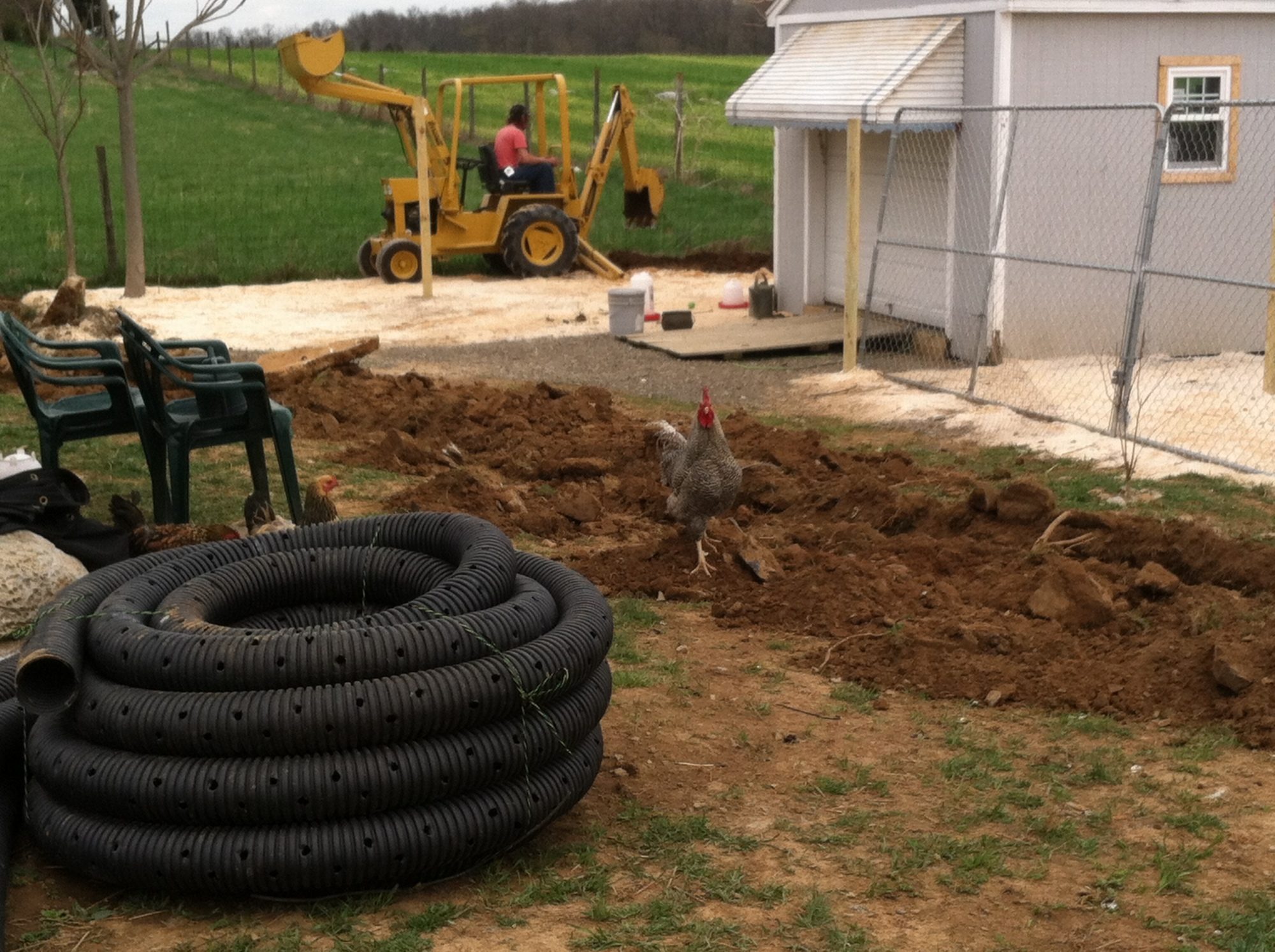 COOPS/POULTRY CORNER BEGINNING OF SET UP & Bad Embden goose eggs from hall family.