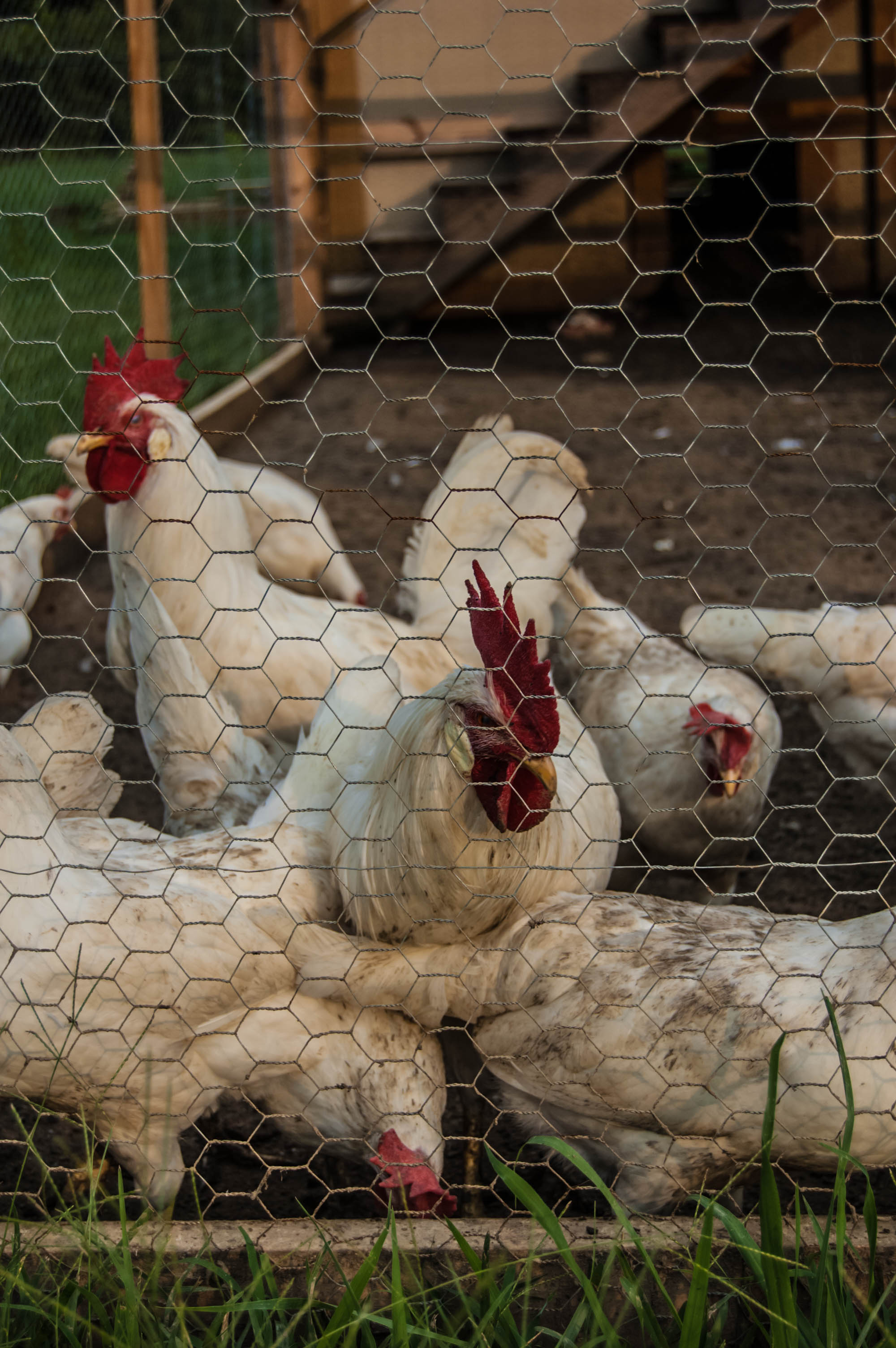 Rhode Island Red and Pearl White Leghorns