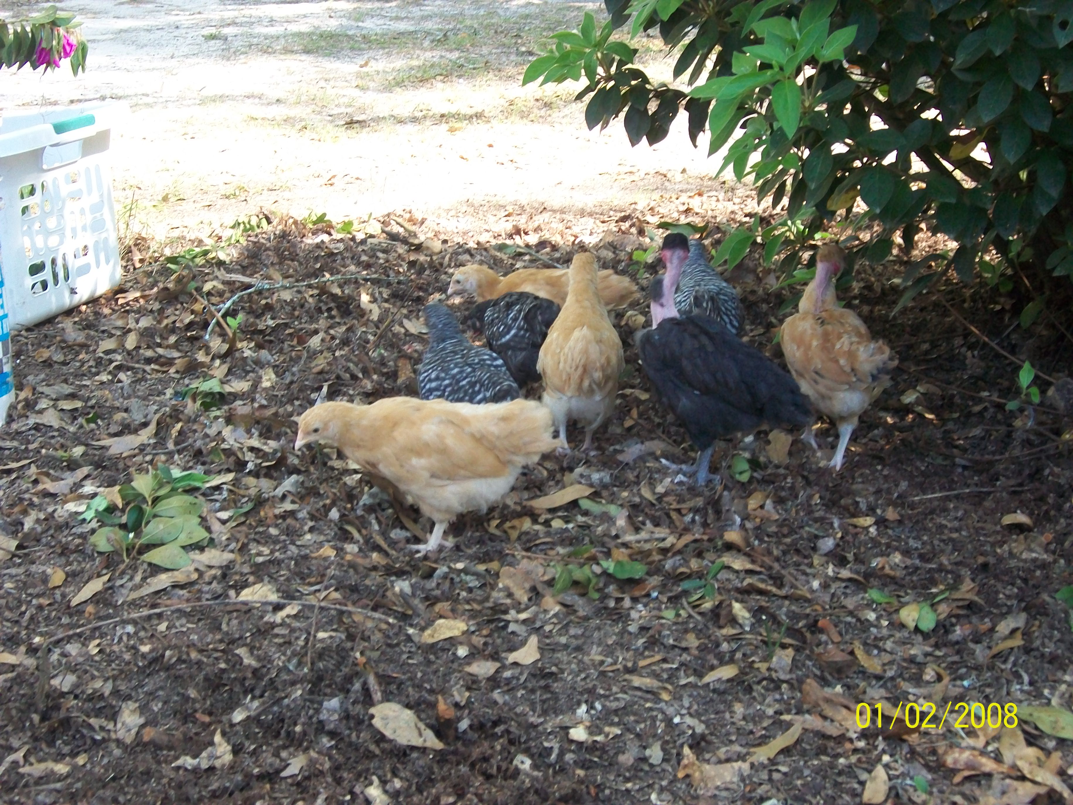 Barred Rocks, Buff Orpington, Columbian Wyandotte, and Naked Neck Chicks + Rhode Island Red hens