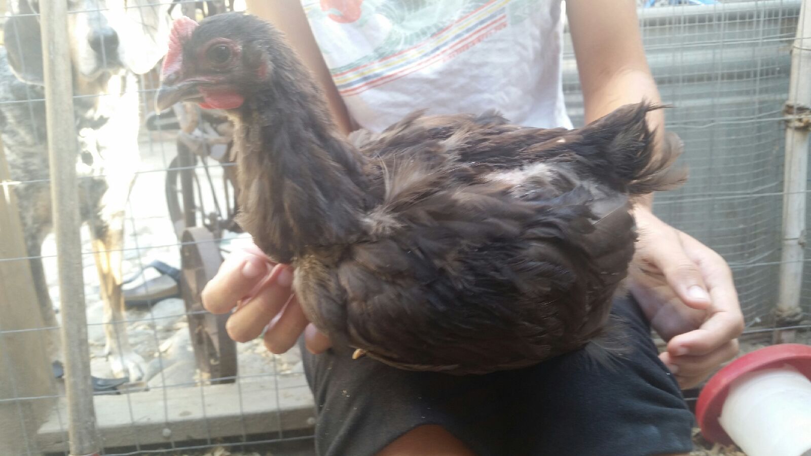Chocolate orphington. Baby photo + 8 weeks old photo