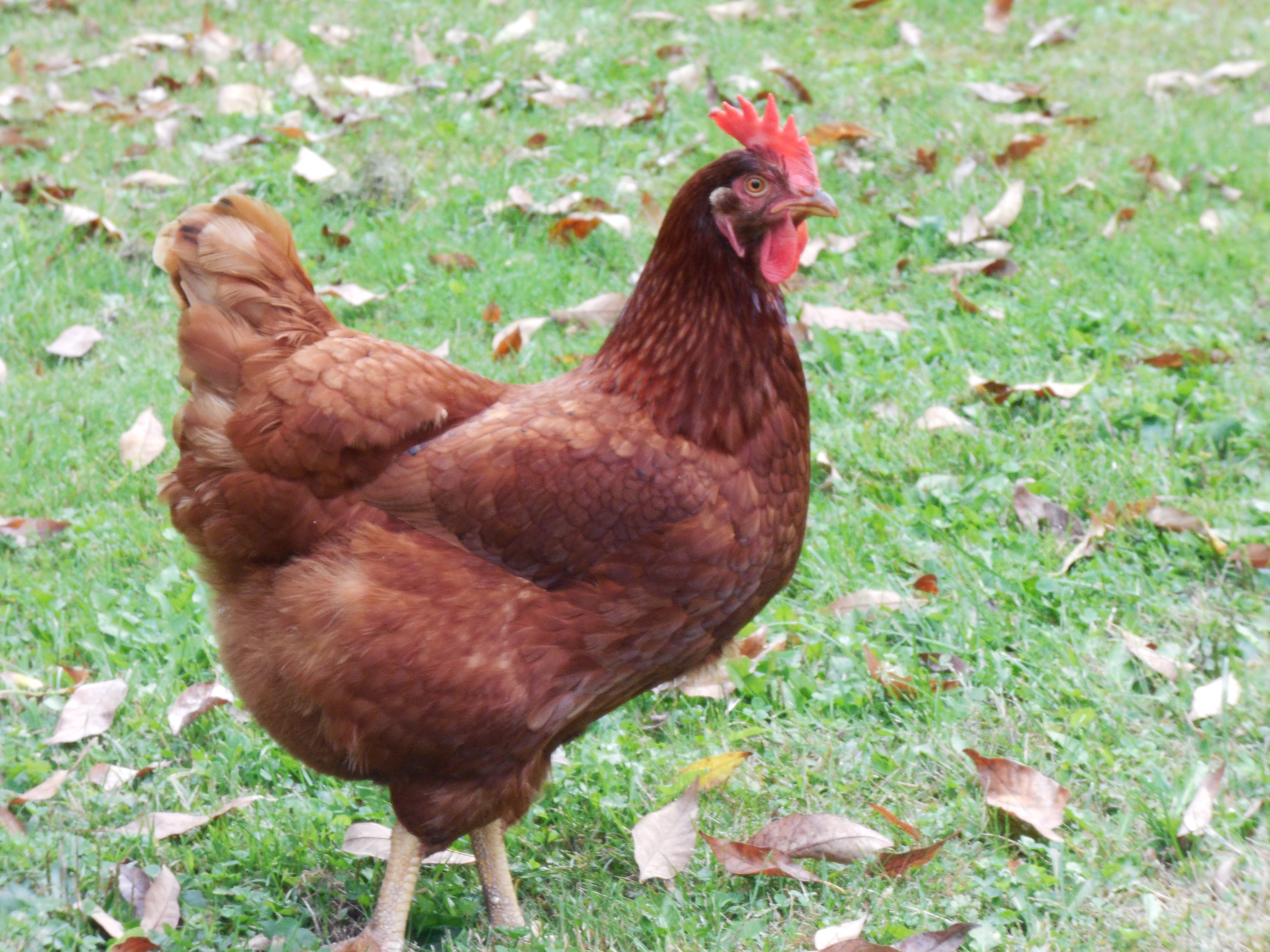 Chickens around and in the garden this fall.